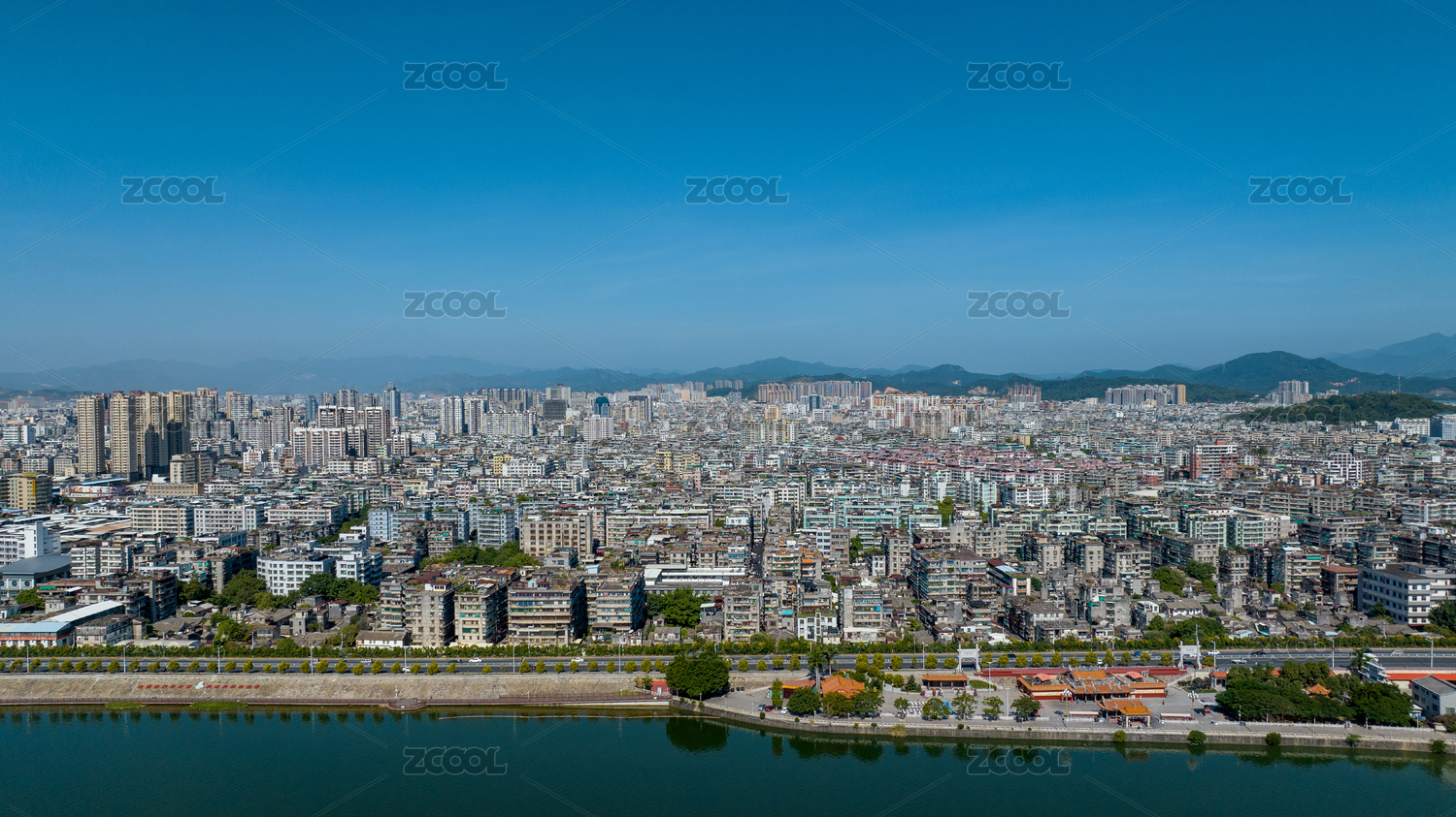 远眺惠州双月湾上的沙滩和海滨上的建筑群