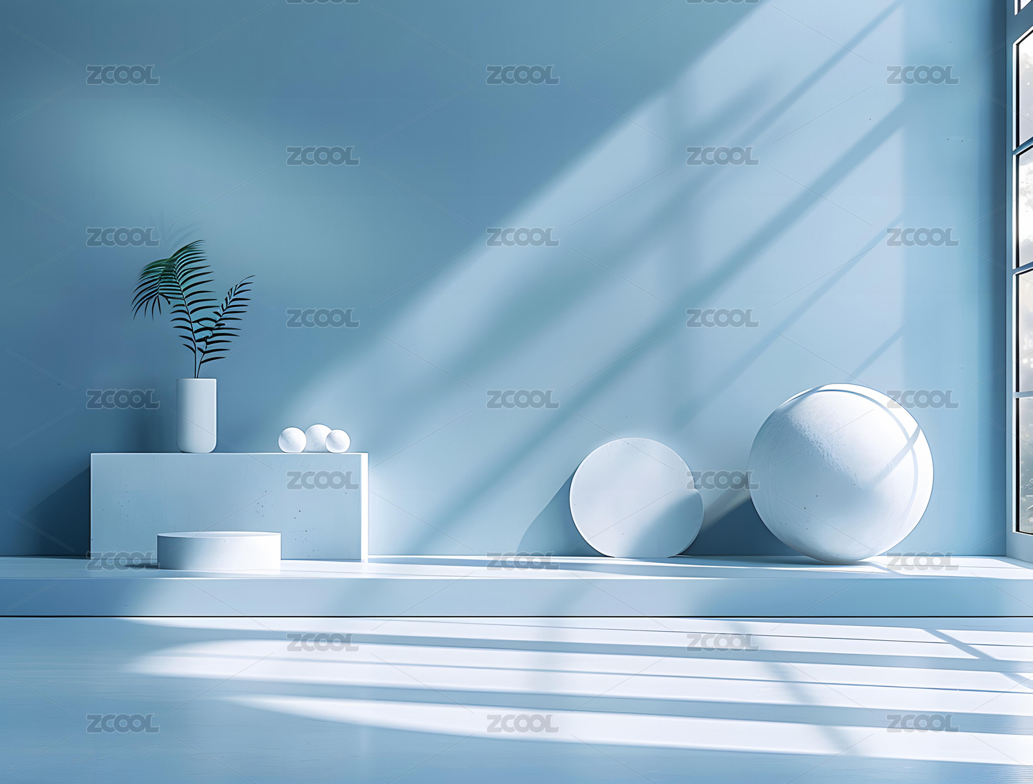 客厅内沙发地毯盆栽健身球等运动场景设计