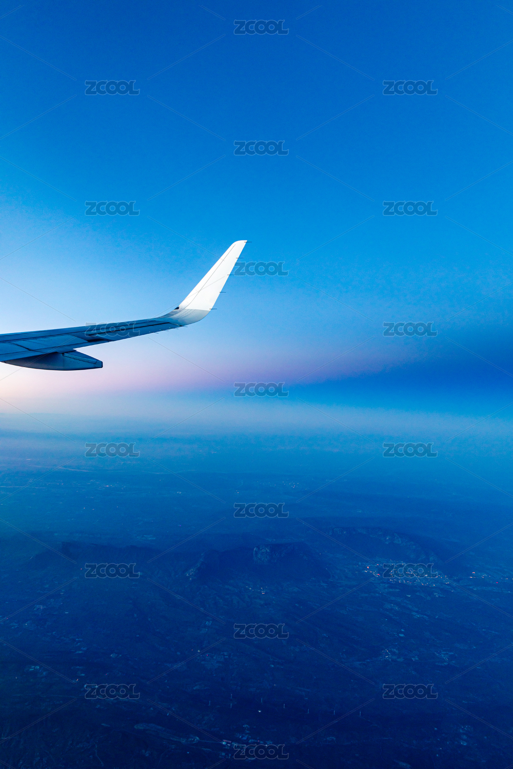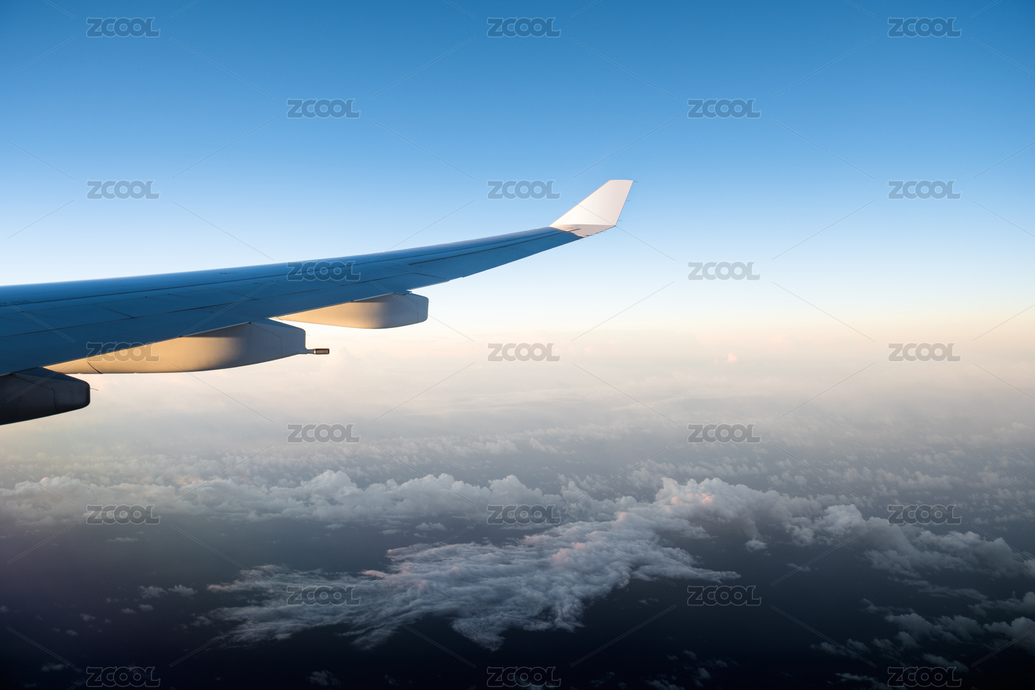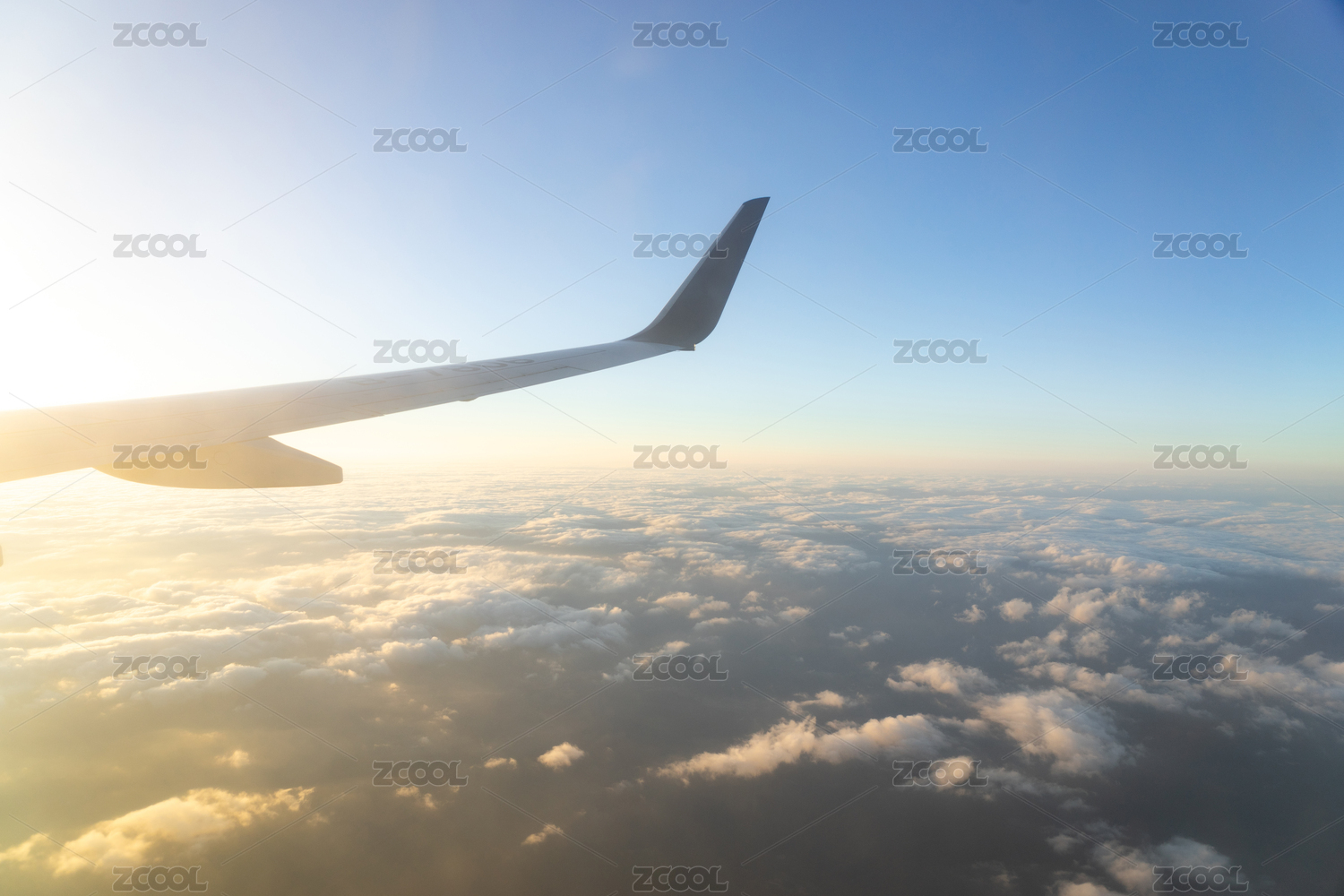 飞机在日落时飞行的景色