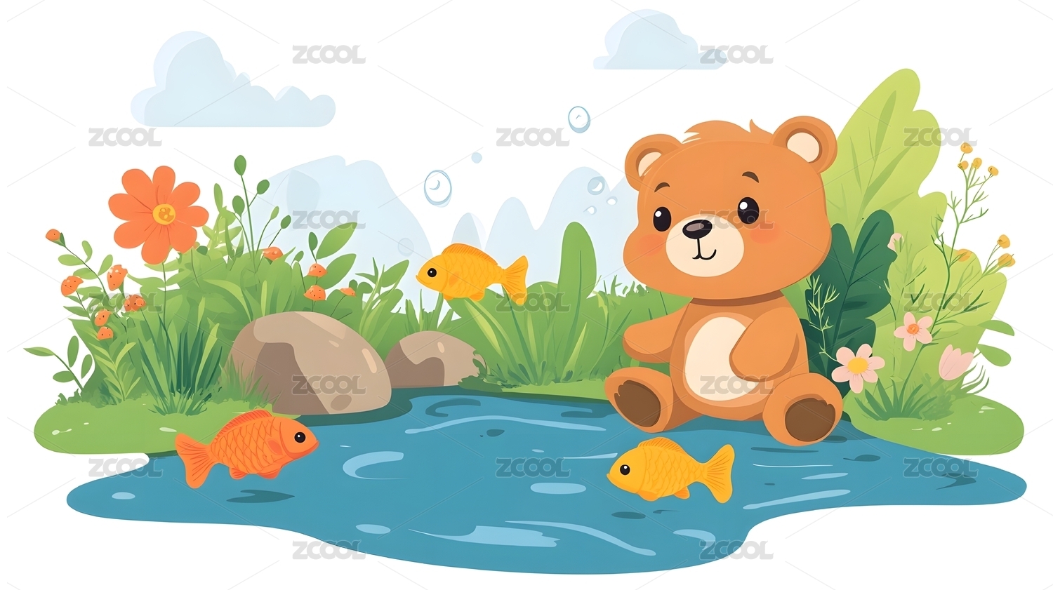 森林,篝火,蘑菇,温暖,快乐,卡通,可爱,自然,童趣,手绘