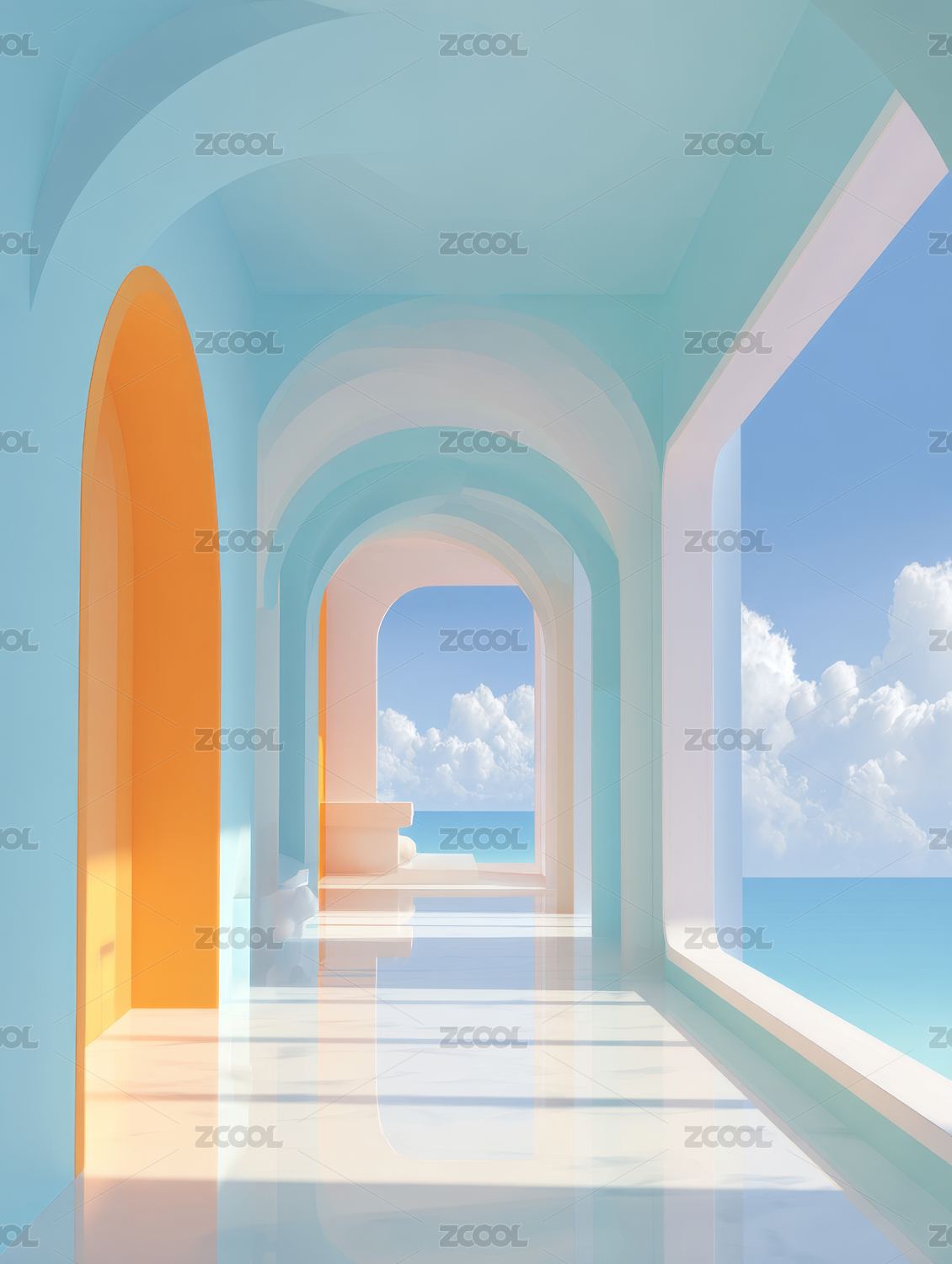拱廊,海洋,窗户,地板,光线,建筑,室内,蓝色,天空