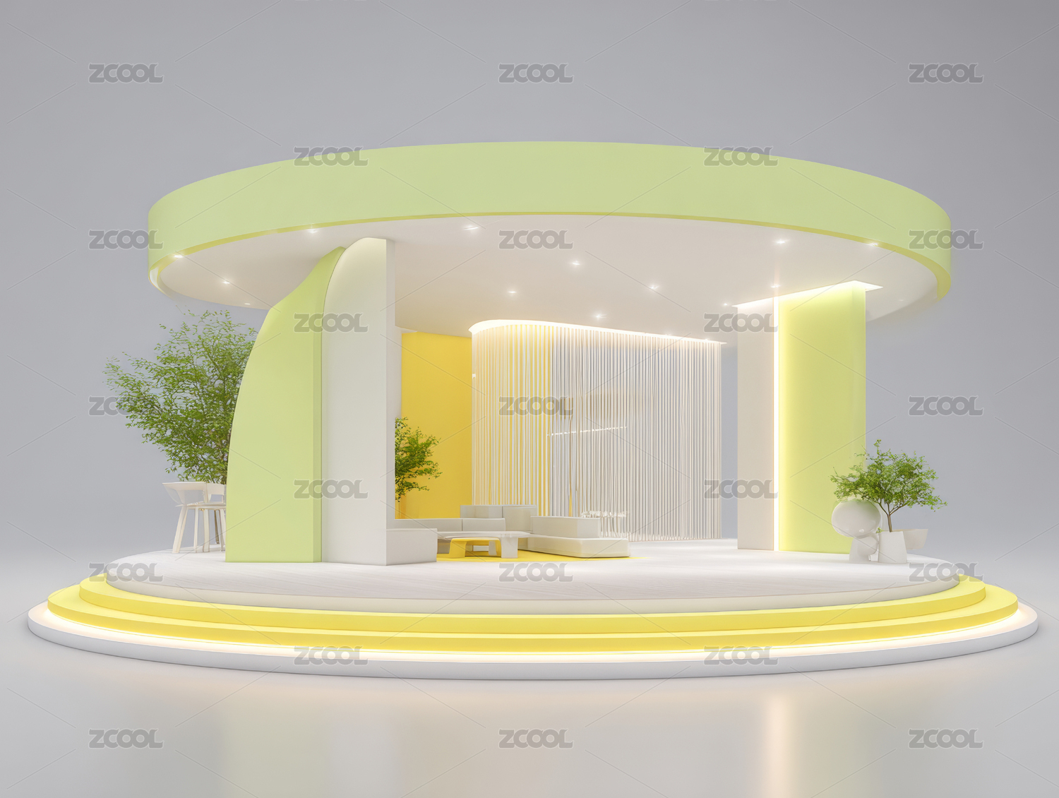 舞台,现代,简约,绿植,圆形,设计,室内,展示,架构