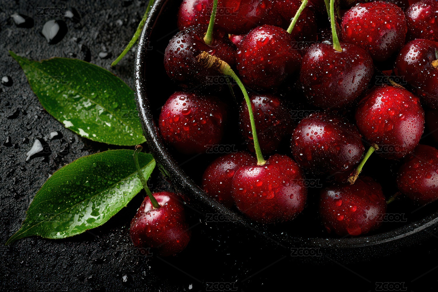 绿色,盘子,樱桃,鲜艳,露珠,枝条,明亮,水滴
