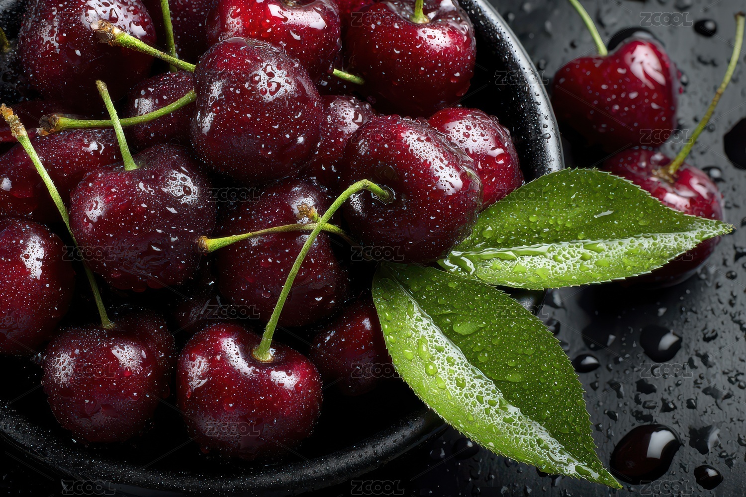 新鲜樱桃装满竹篮水珠晶莹剔透
