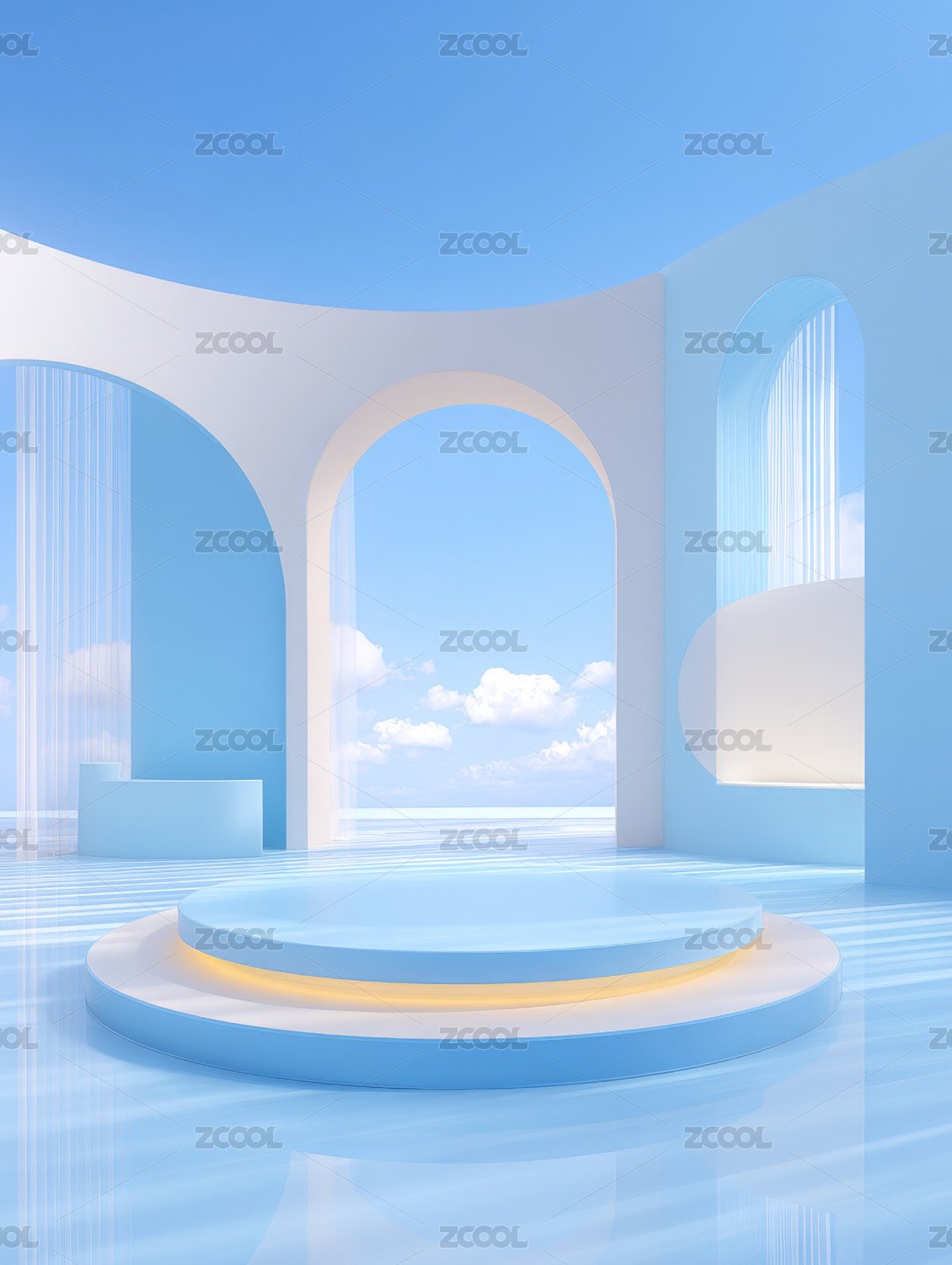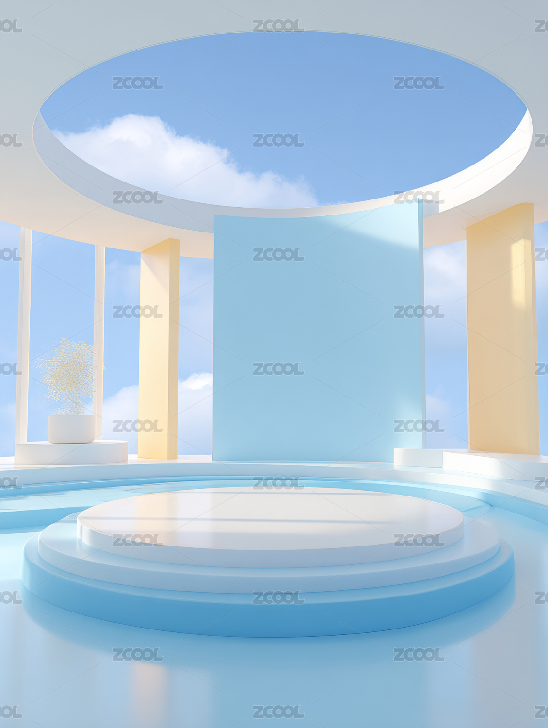 舞台,现代,简约,展示,室内,植物,窗户,海景,圆形,背景