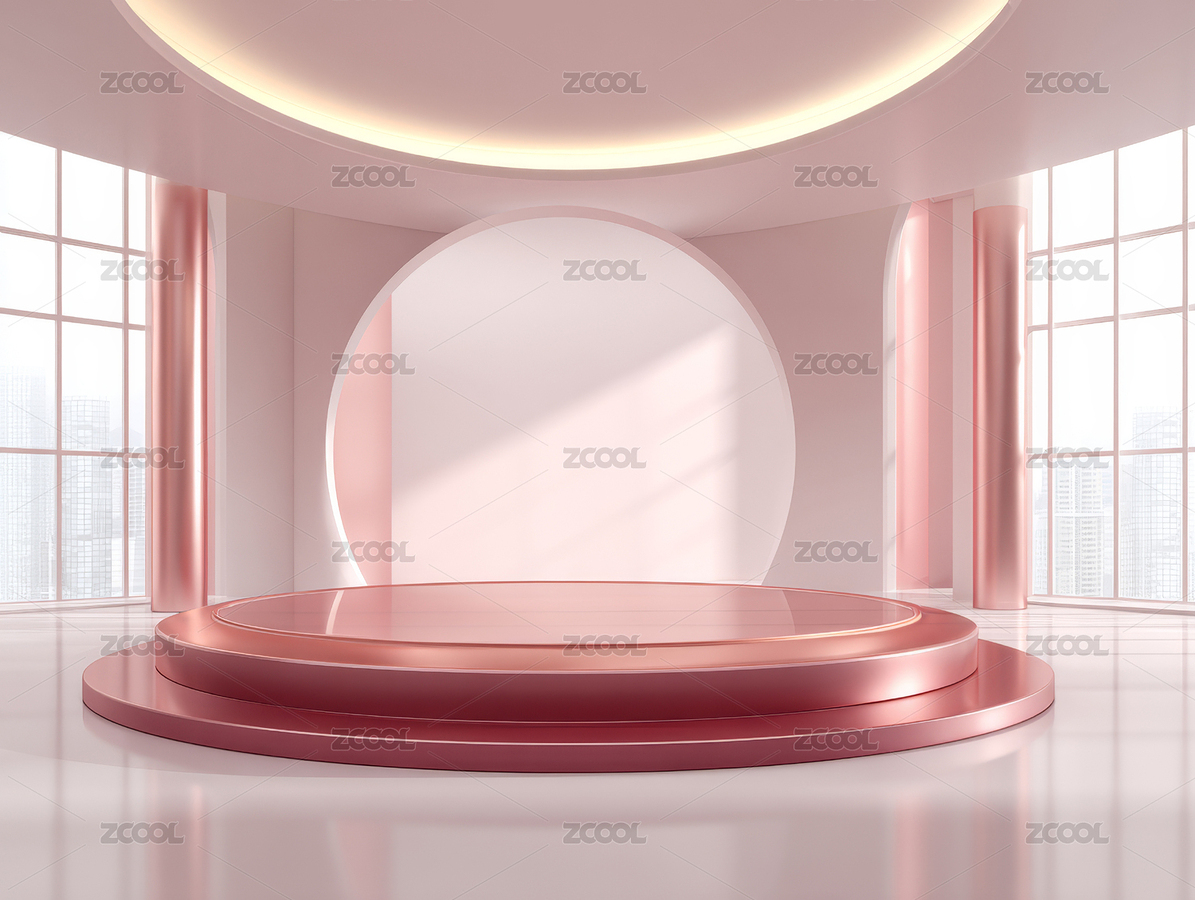 舞台,现代,简约,粉色,圆形,窗户,光线,室内,设计,展示