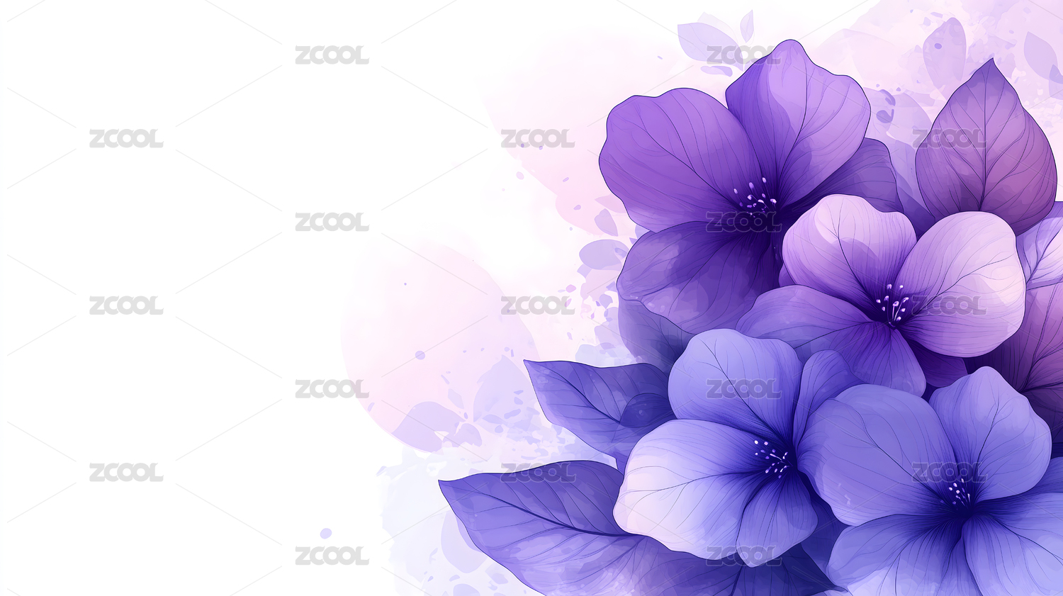 淡紫花朵水彩画背景