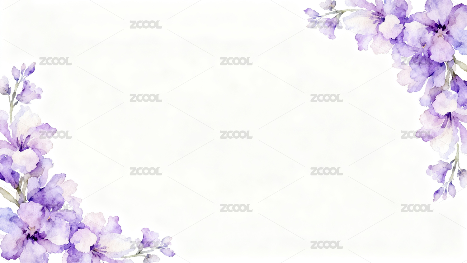 水彩紫花边框轻柔意境