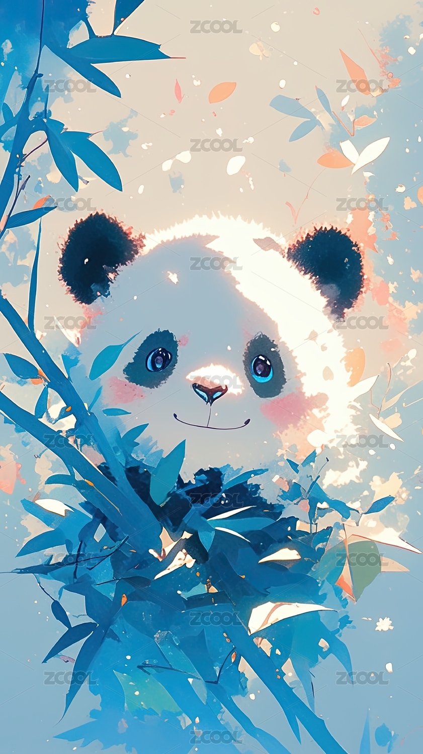 熊猫在竹林中的梦幻场景