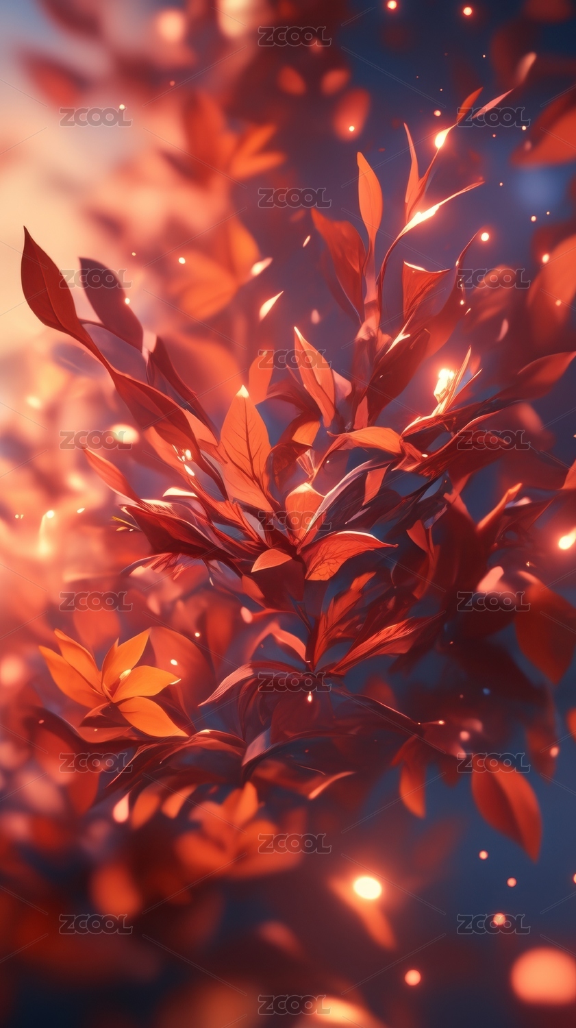 光影交错的红色树叶