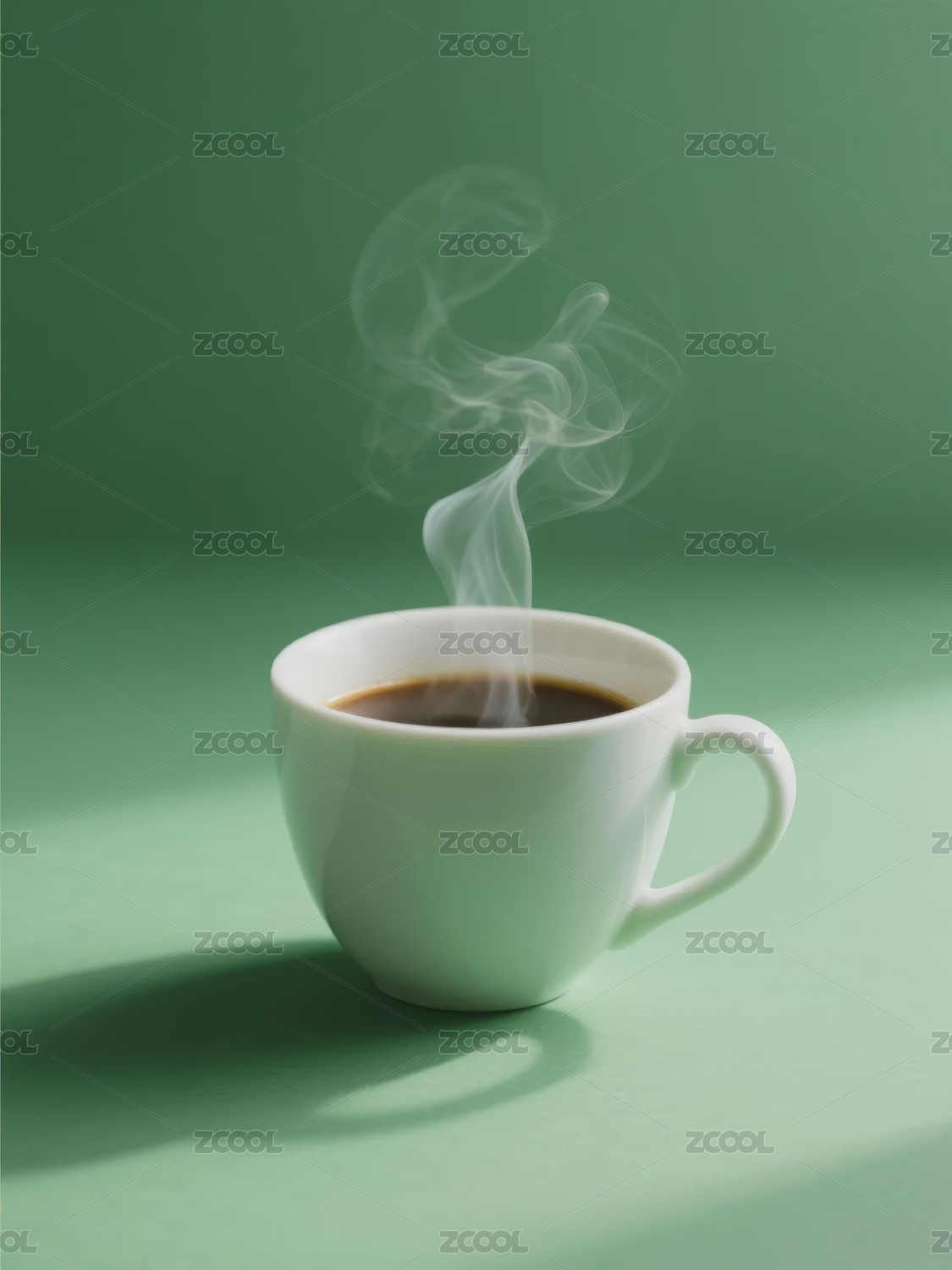 冒着热气的绿色咖啡杯