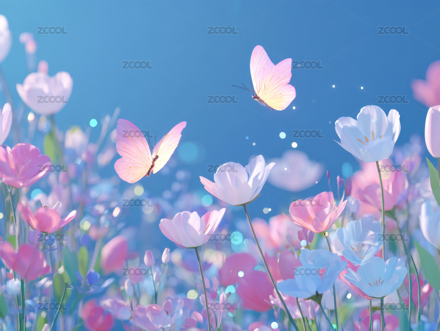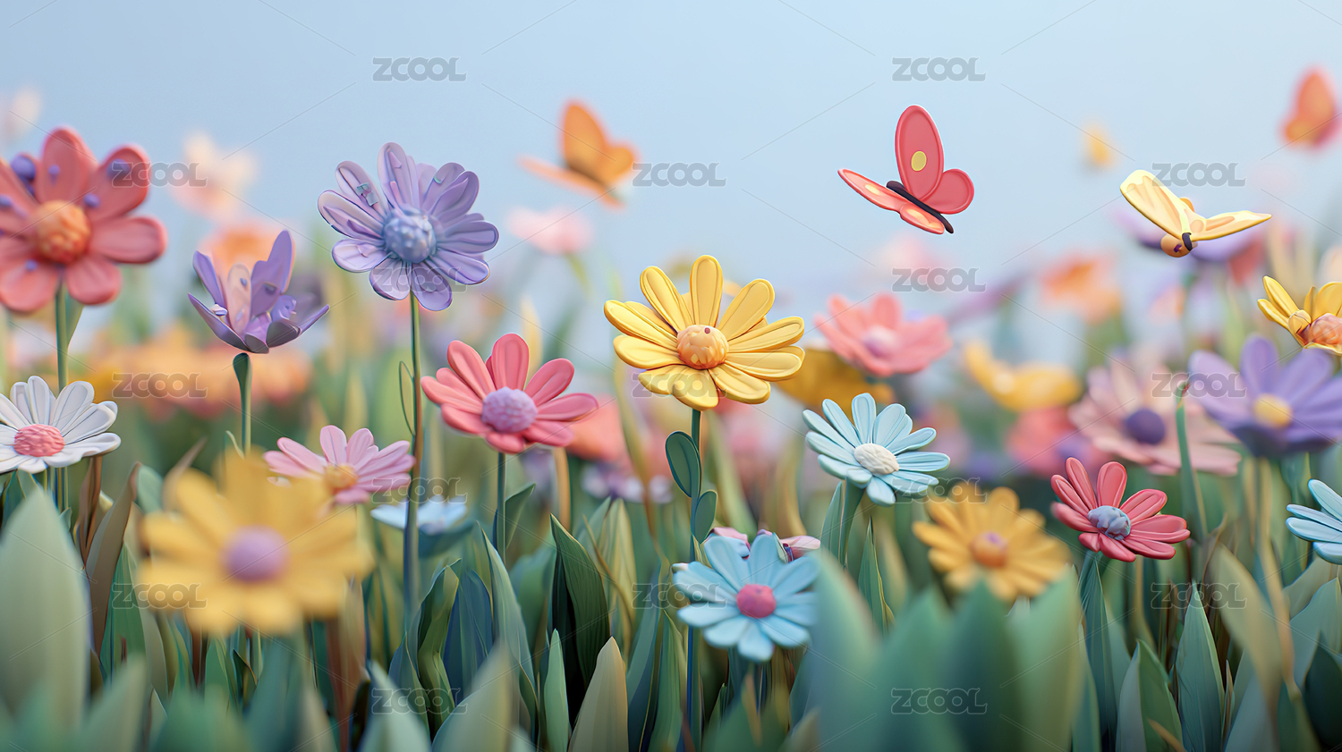 3D卡通唯美风景花朵背景