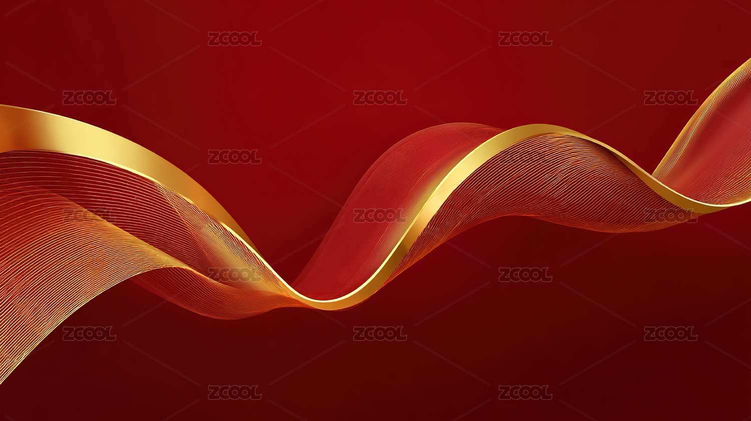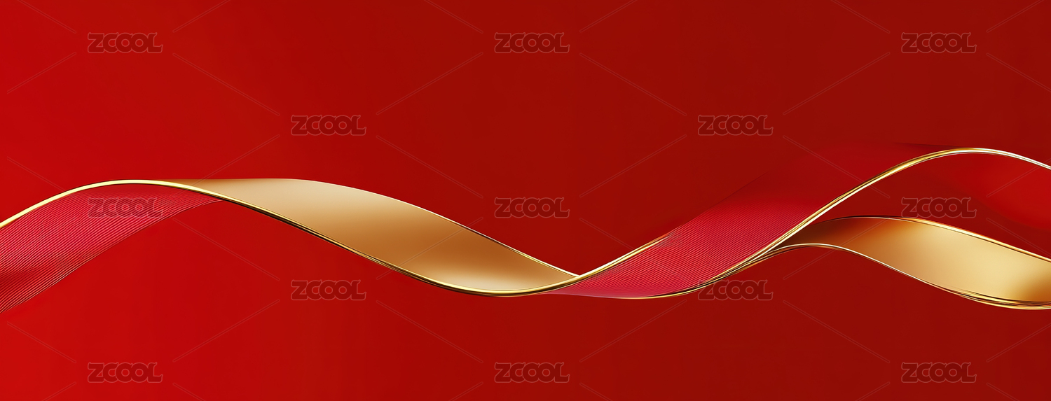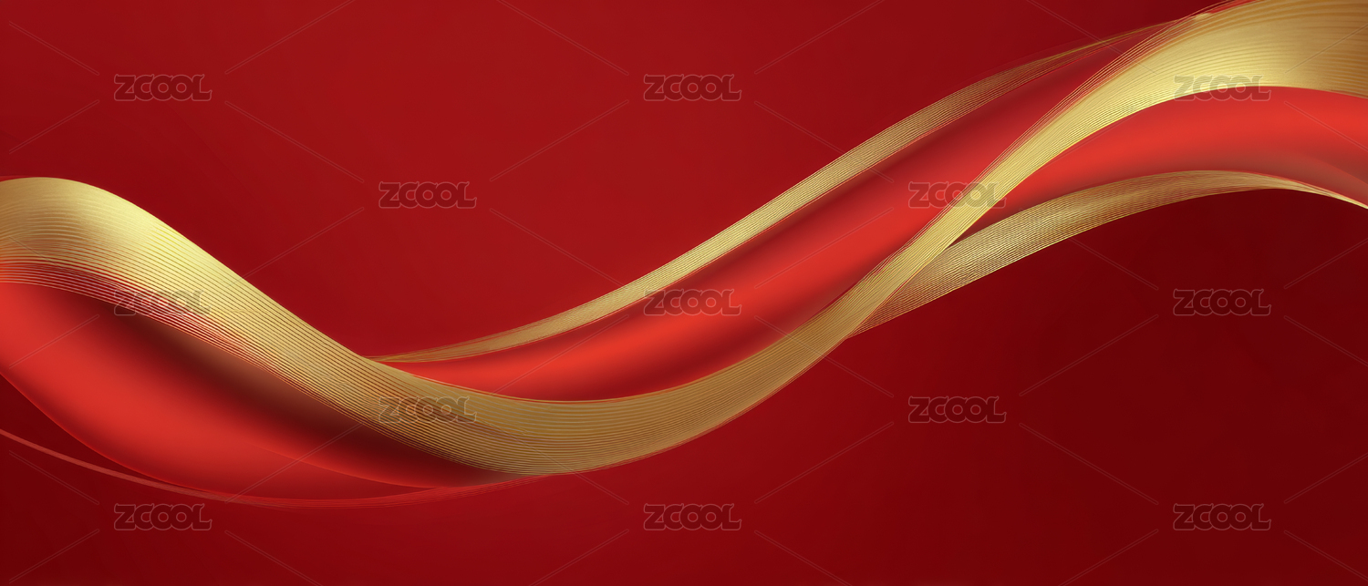 红色背景金色丝带抽象图案