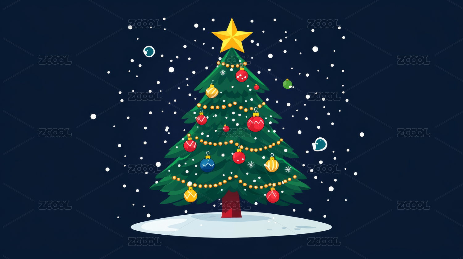 一棵装饰精美的圣诞树背景是深蓝色的夜空