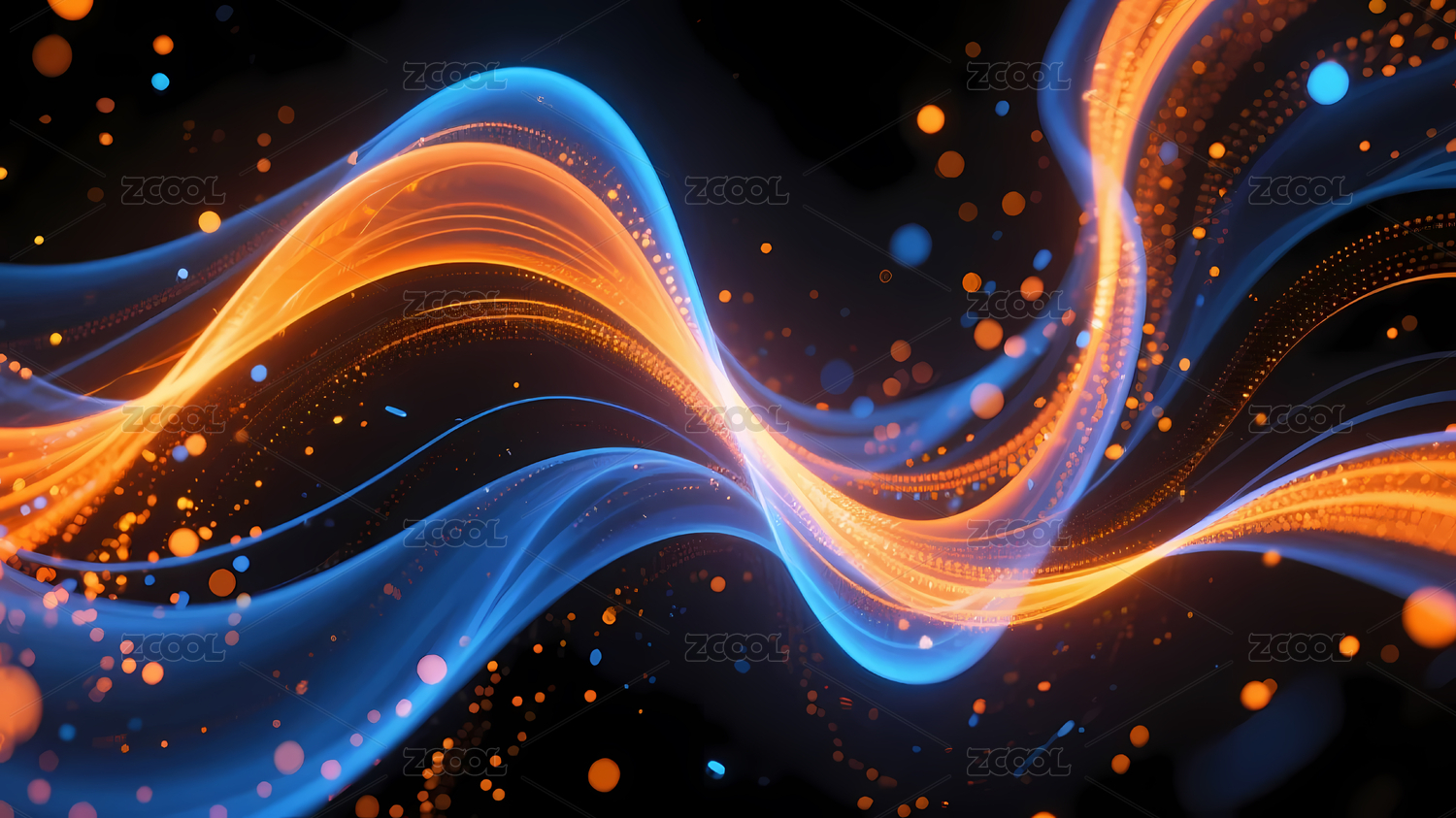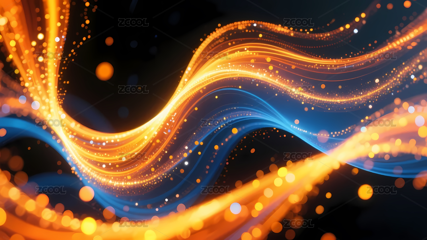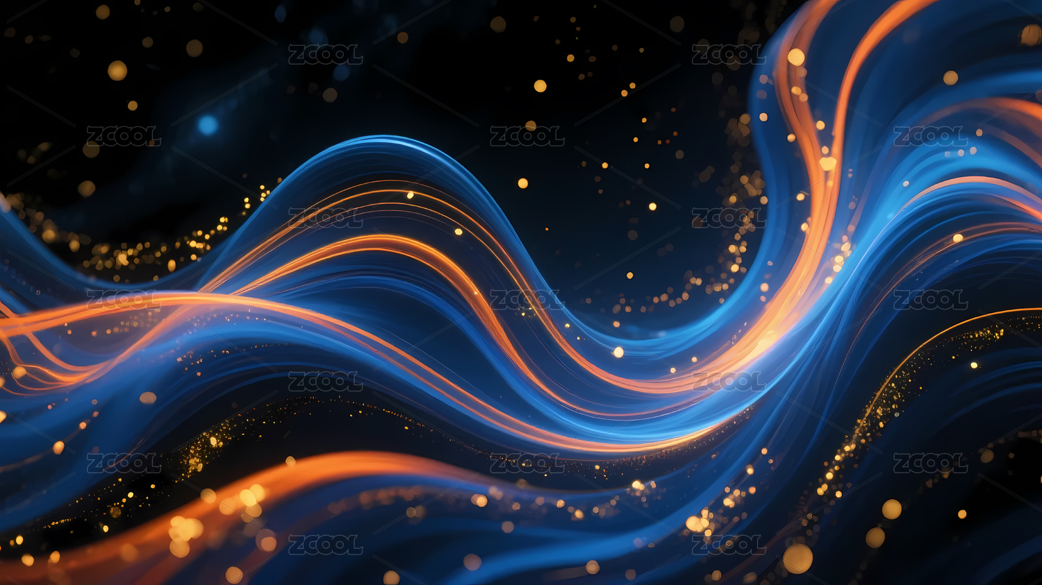 蓝色,背景,橙色,光点,金色,黑色,波浪,星空,光带,交织