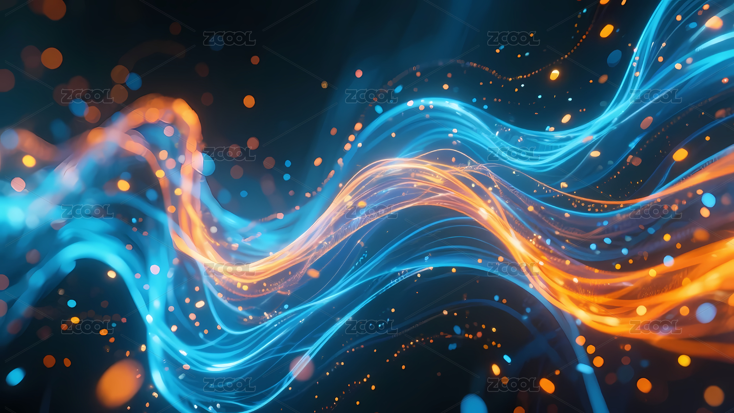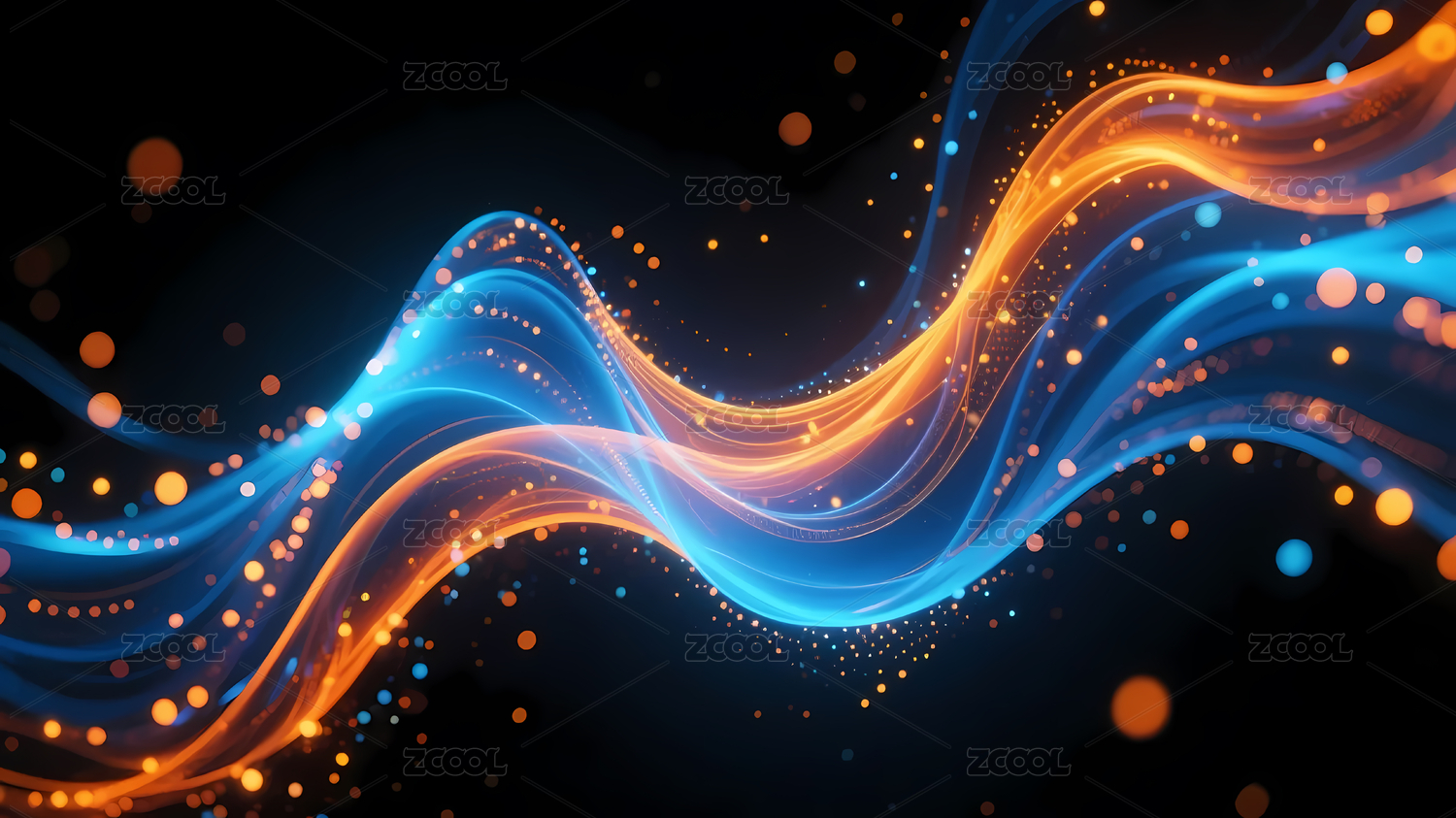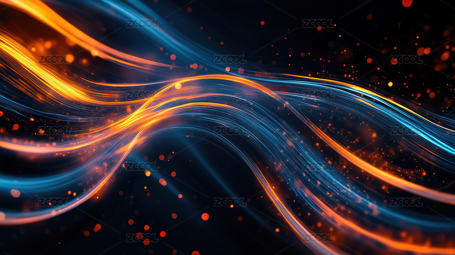 蓝色,背景,橙色,光点,金色,黑色,波浪,星空,光带,交织