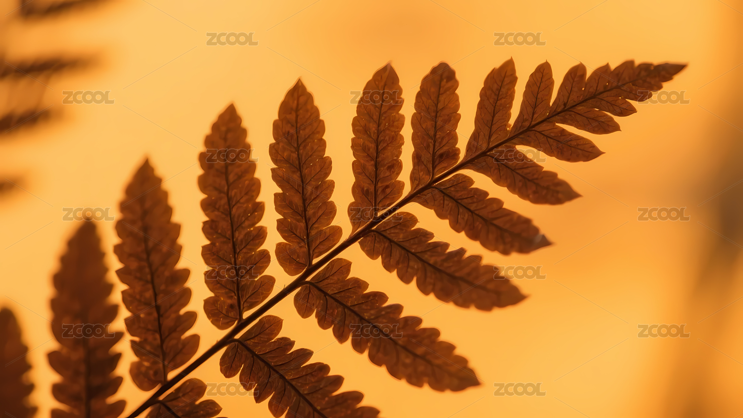 棕色蕨类植物与橙黄背景