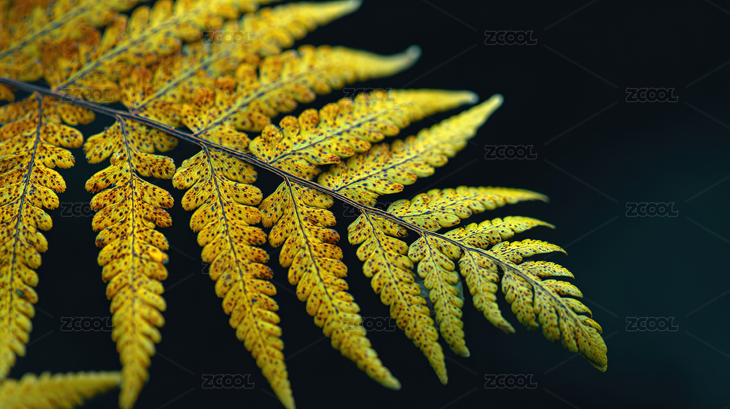 金黄色蕨叶深绿色背景