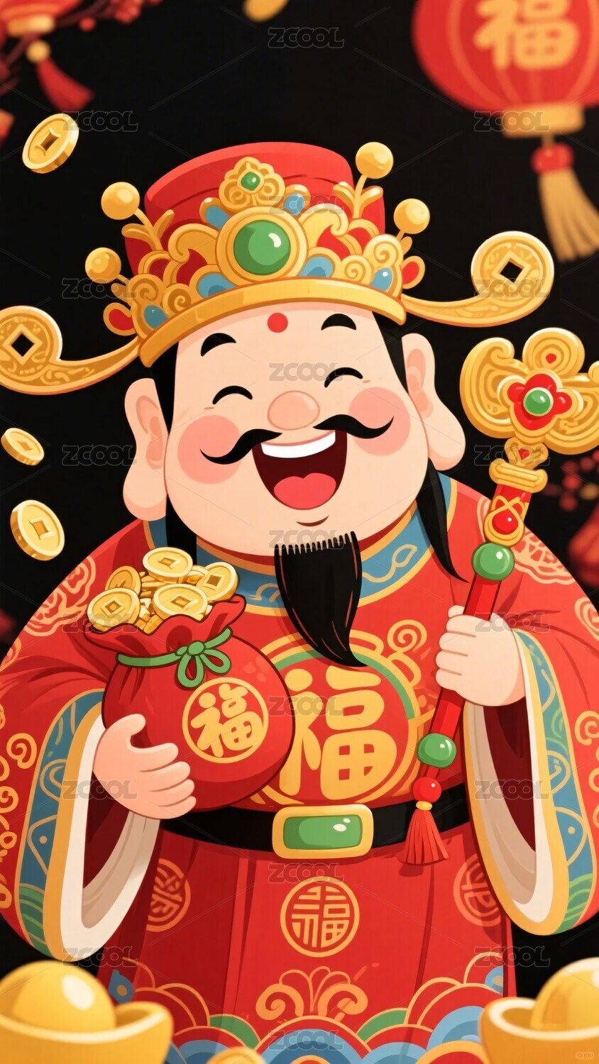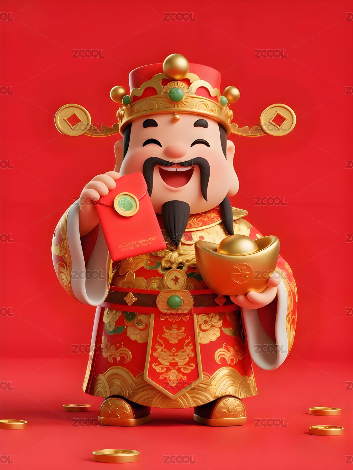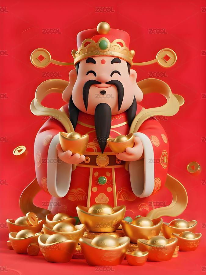 财神,财神爷,红色,喜庆,财富,开业,正月初五,财源广进,3D,海报