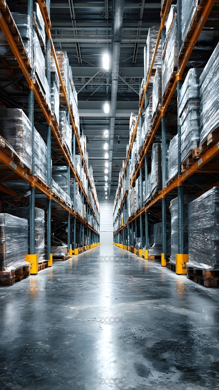 灯光,货架,仓库,通道,金属,整齐,工业,空间