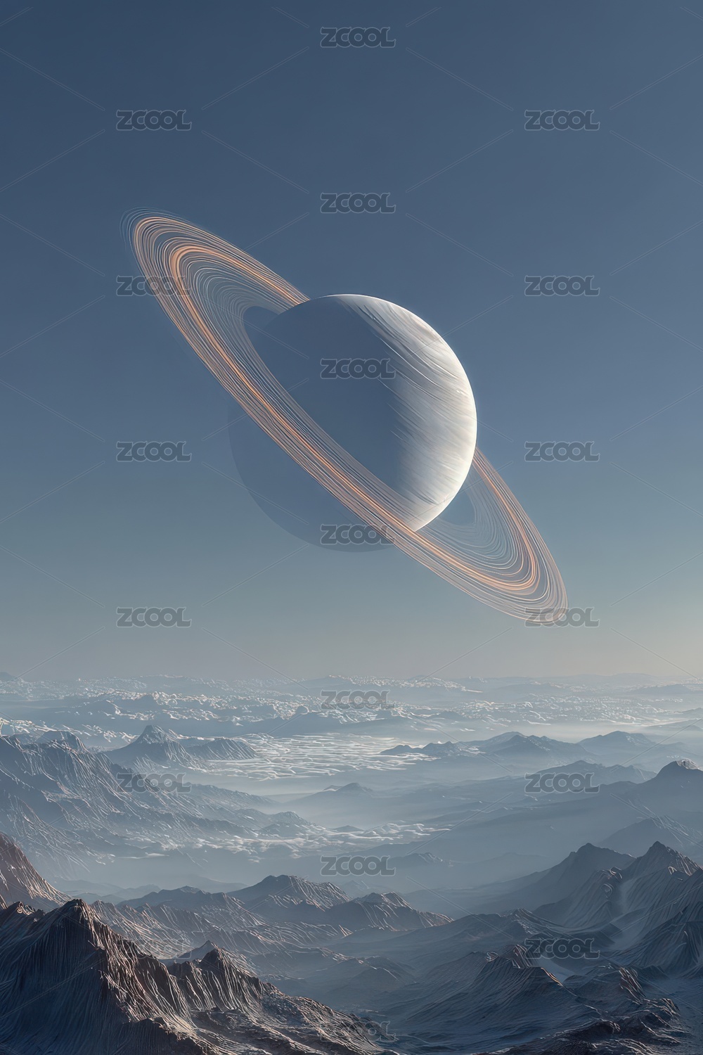 宁静,云雾,天际,神秘,行星,环带,雪山,广阔
