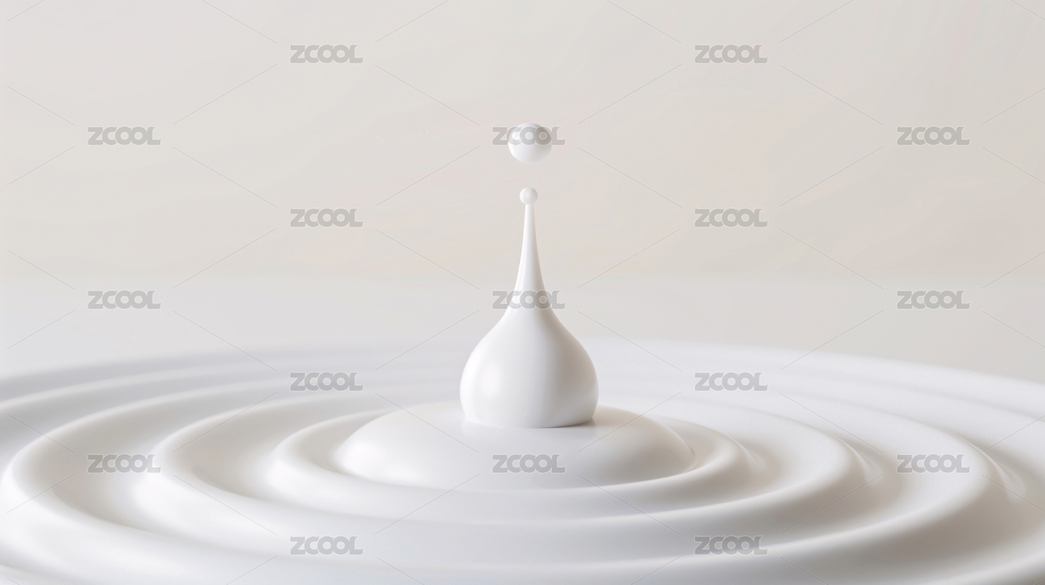 倒牛奶溅起的水珠和波纹,近景,牛奶饮品广