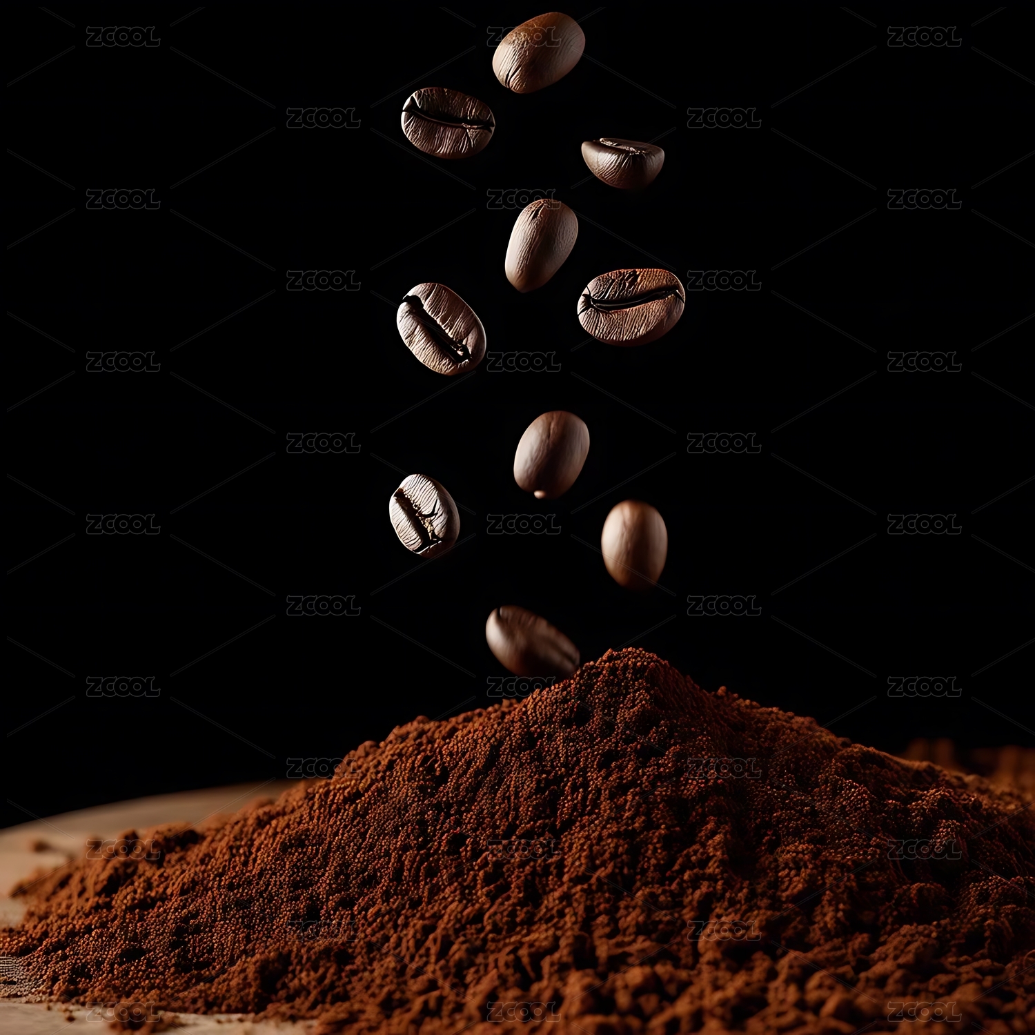 主体,交织,背景,黑色,咖啡粉,咖啡豆,棕色,深棕,堆积,质感
