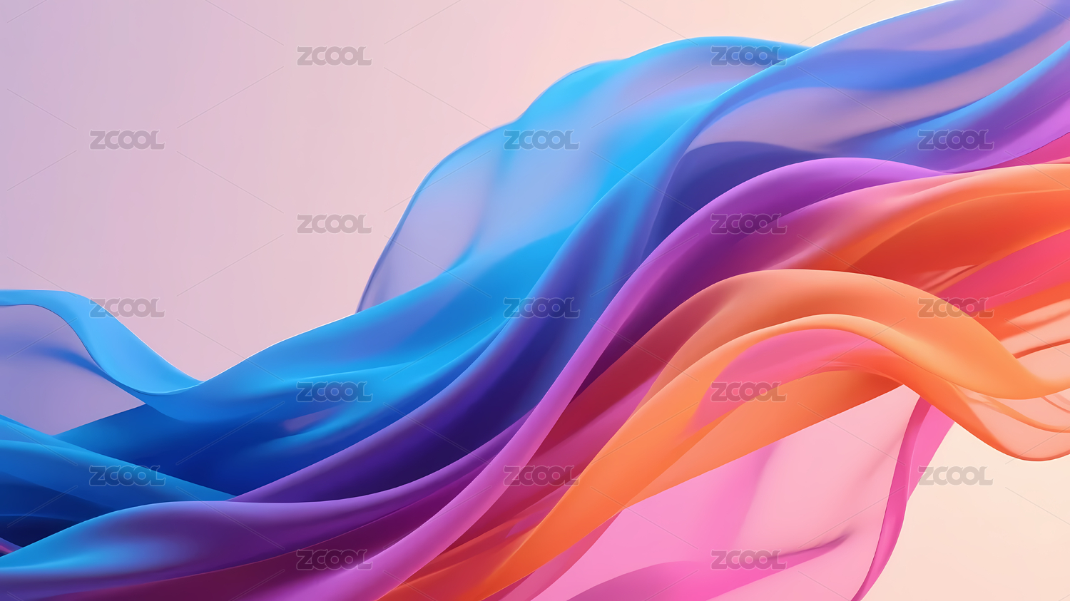 粉橙紫蓝丝带与灰粉渐变背景
