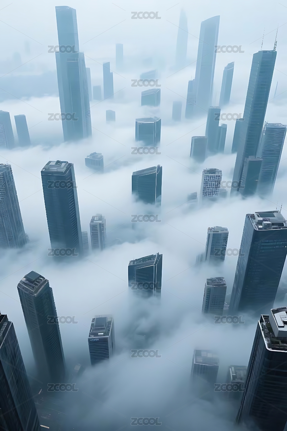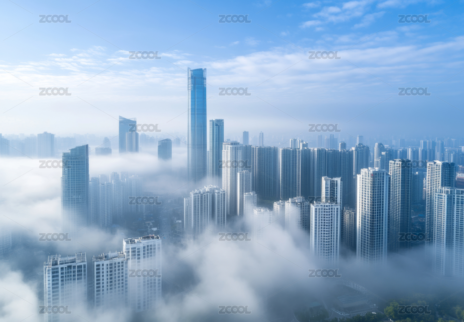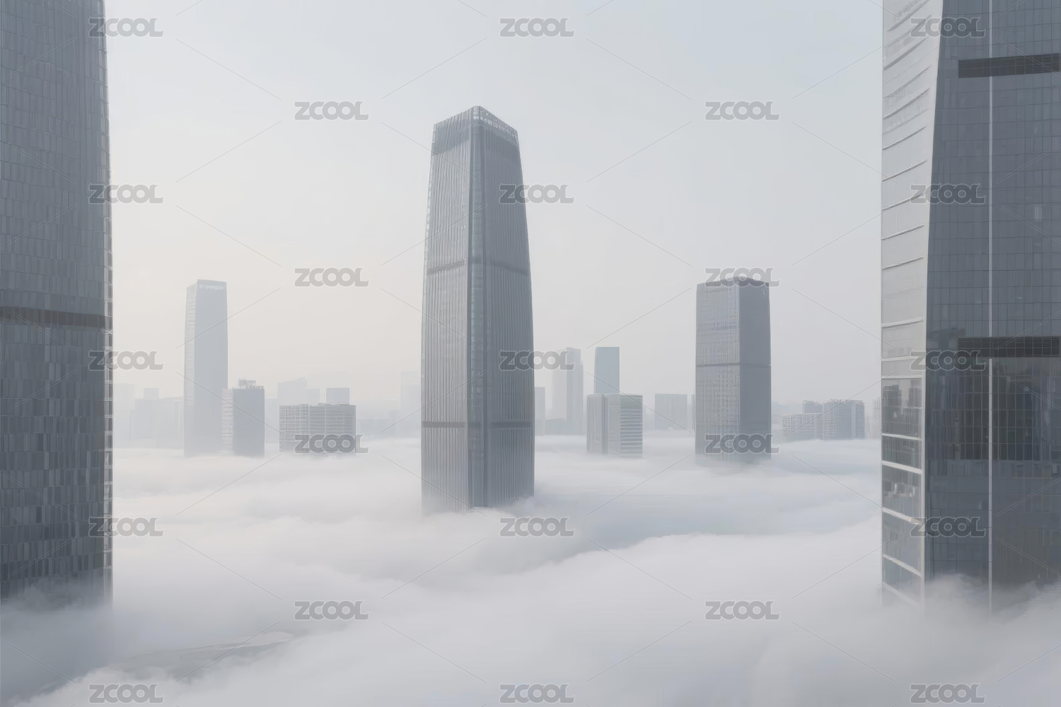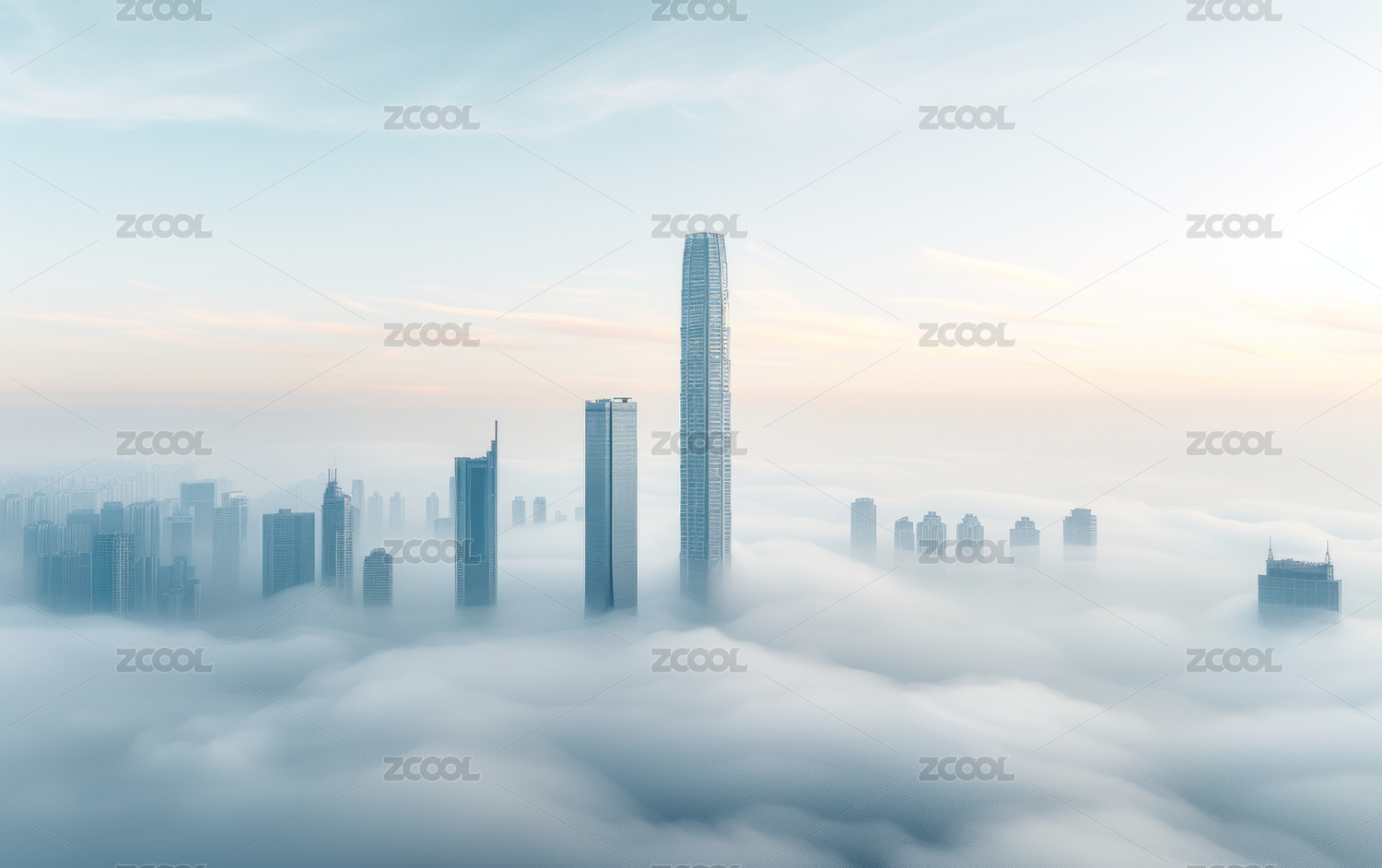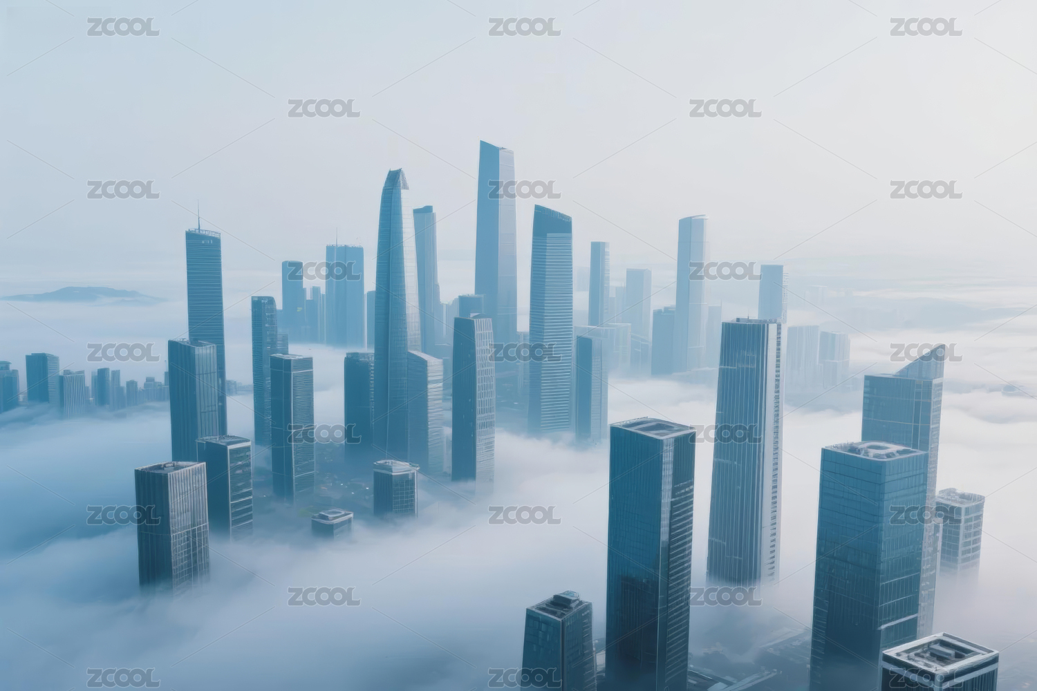 城市, 高楼, 建筑, 现代, 都市, 天际线, 雾气, 清晨, 景观, 远方