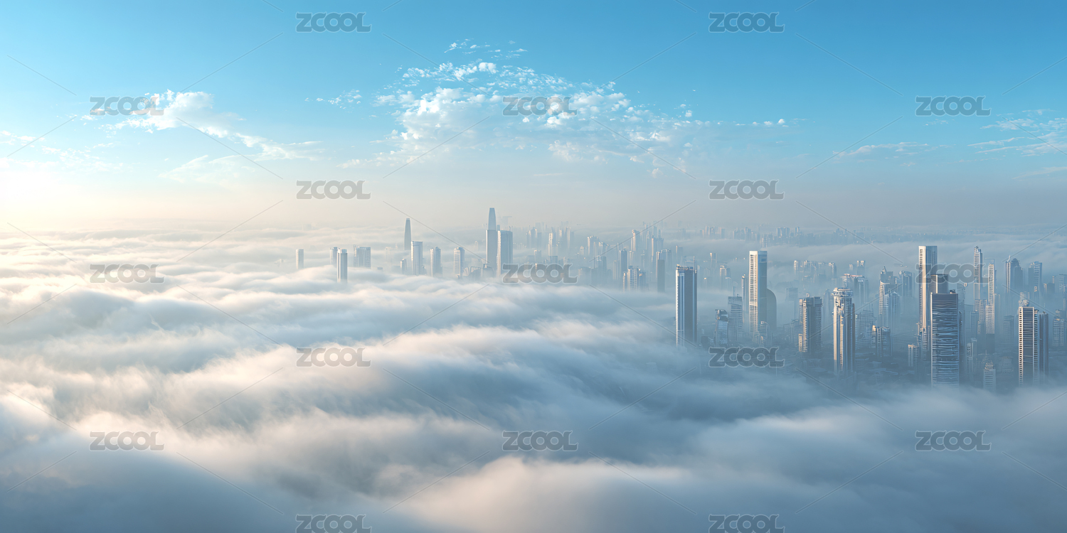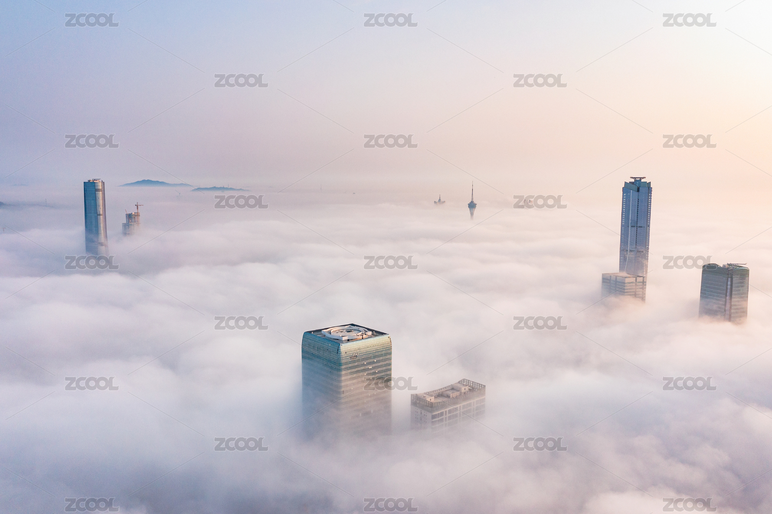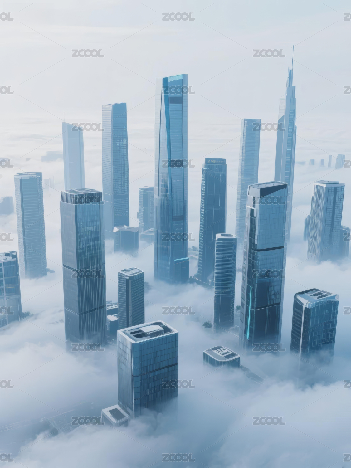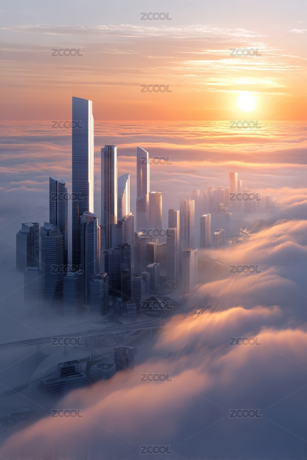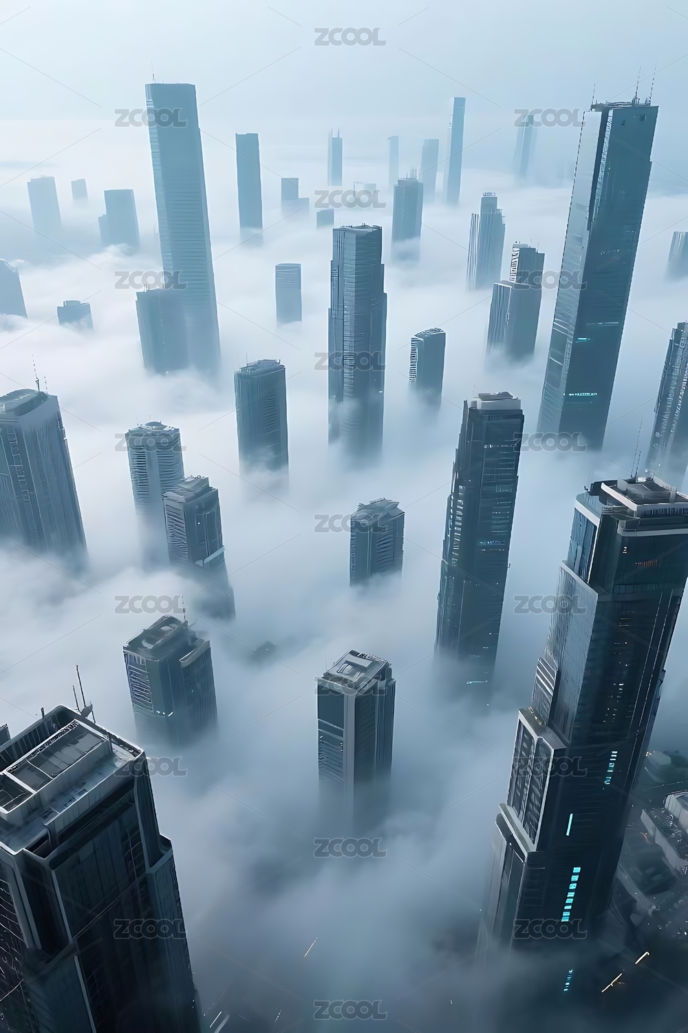 城市, 高楼, 建筑, 现代, 都市, 天际线, 雾气, 清晨, 景观, 远方