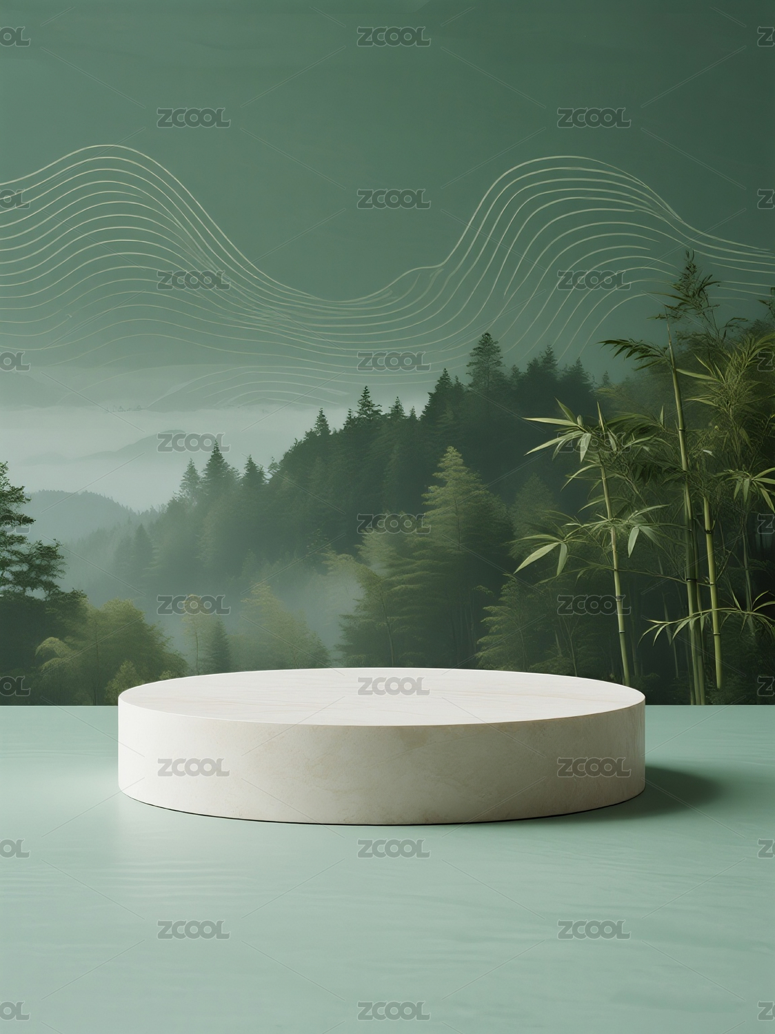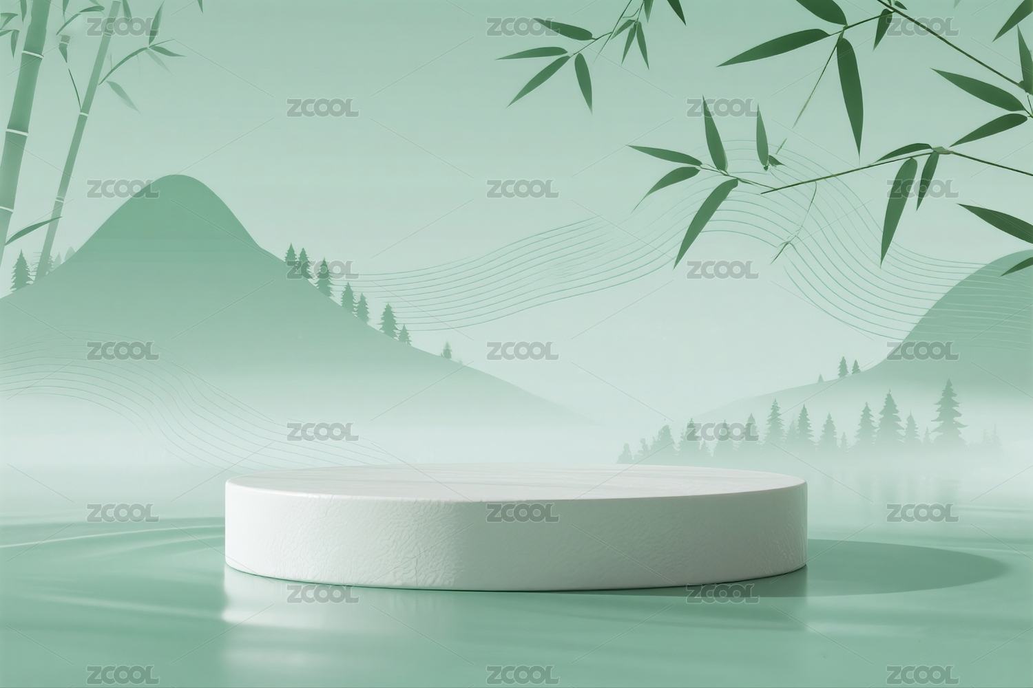 清新,背景,详情页,电商,展示台,陈列台,山峦,山水,山水画,绿色