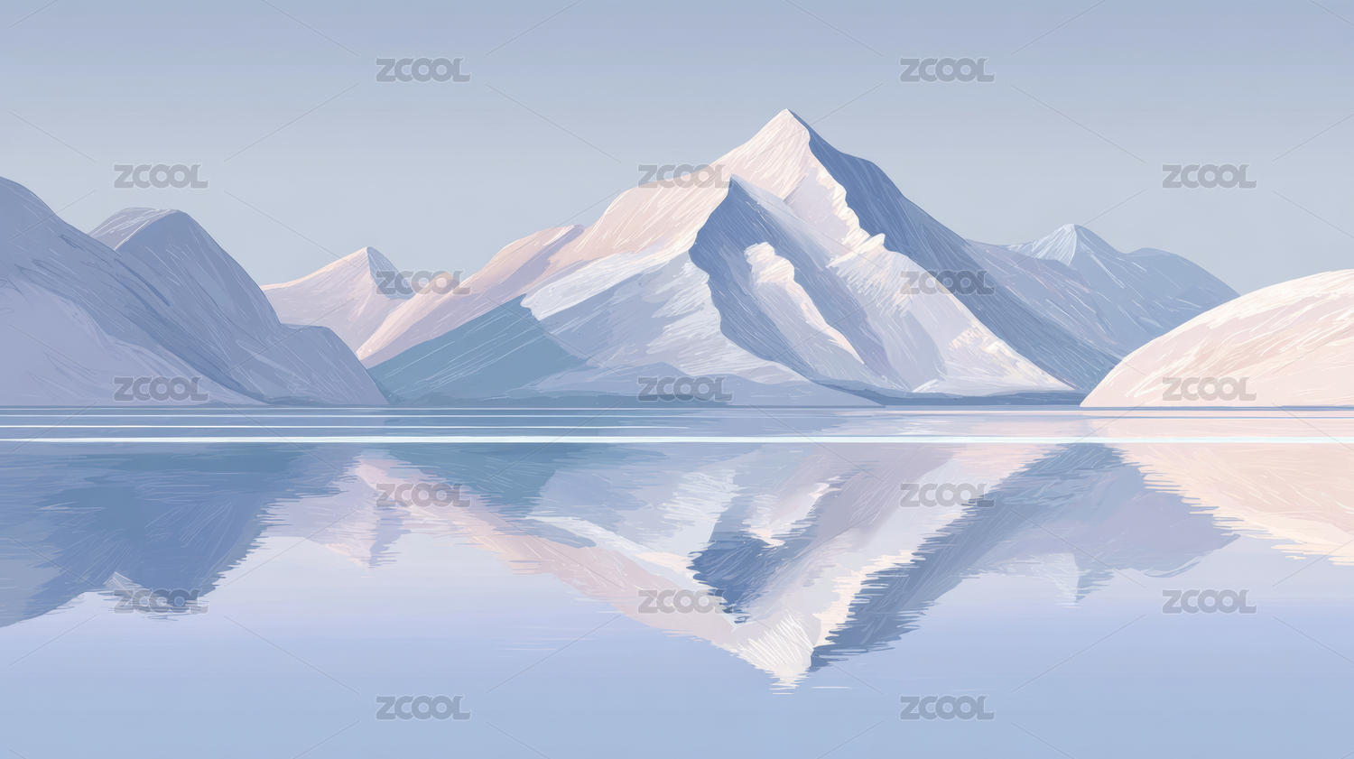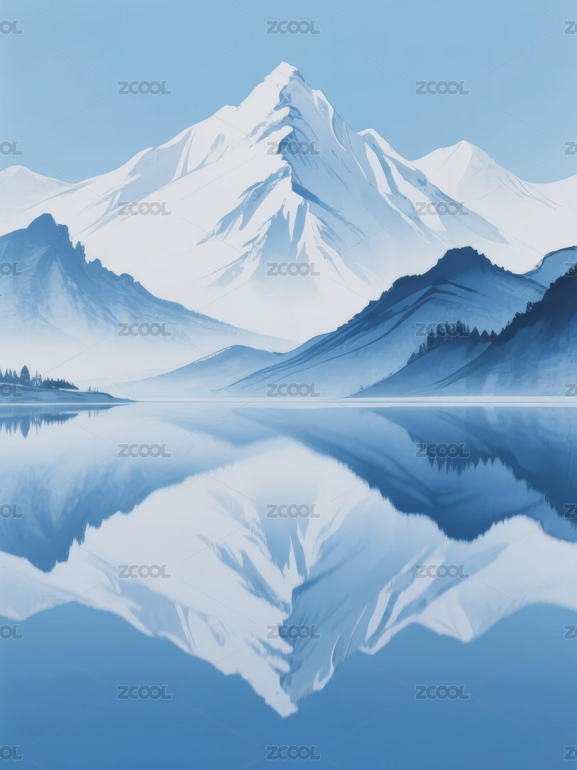 简约扁平风山脉和湖泊上的倒影