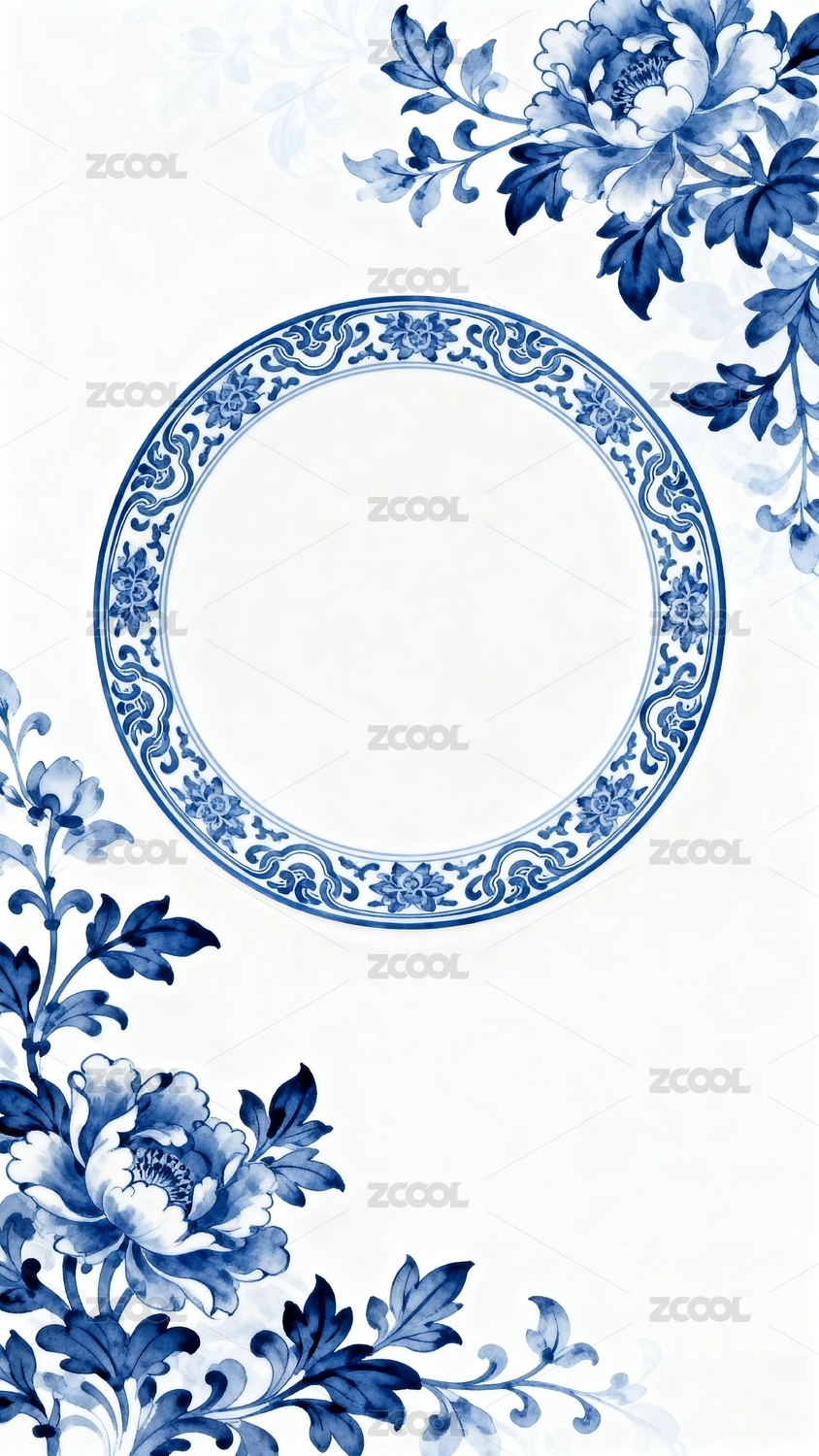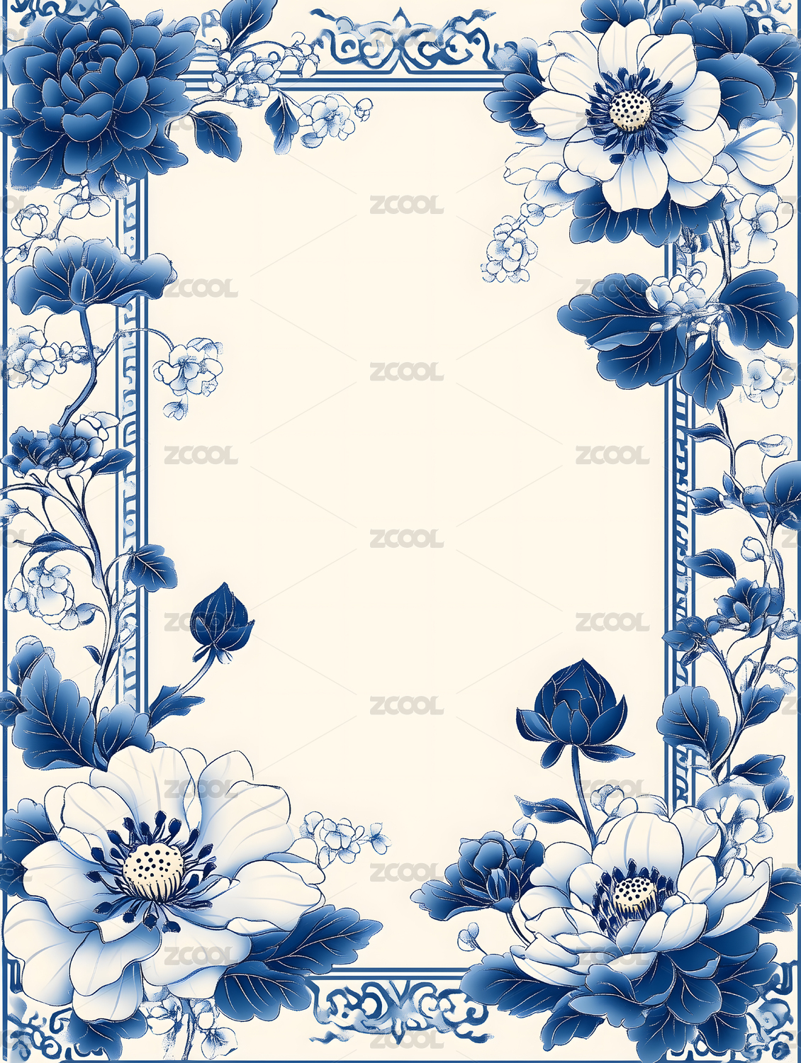 数码复古水彩青花瓷花卉装饰抽象海报背景