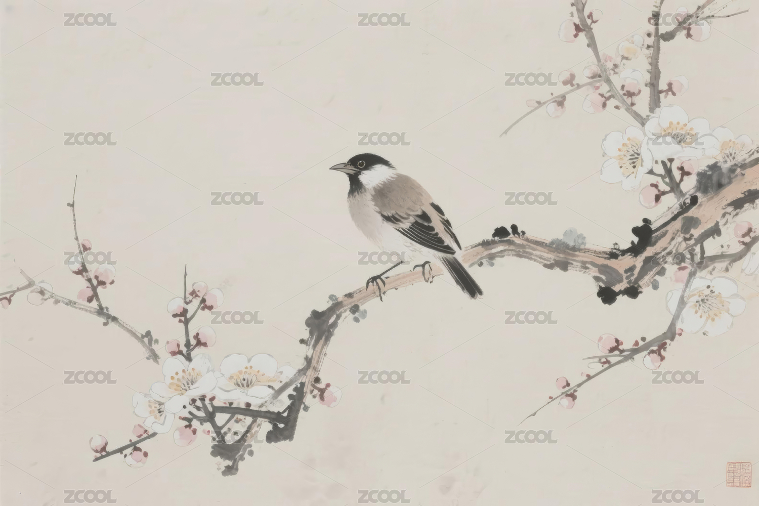 梅花枝上鸟栖石