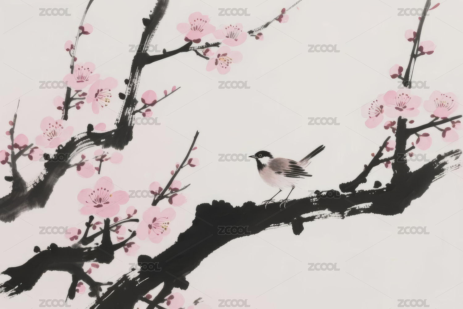 梅花枝头栖鸟图