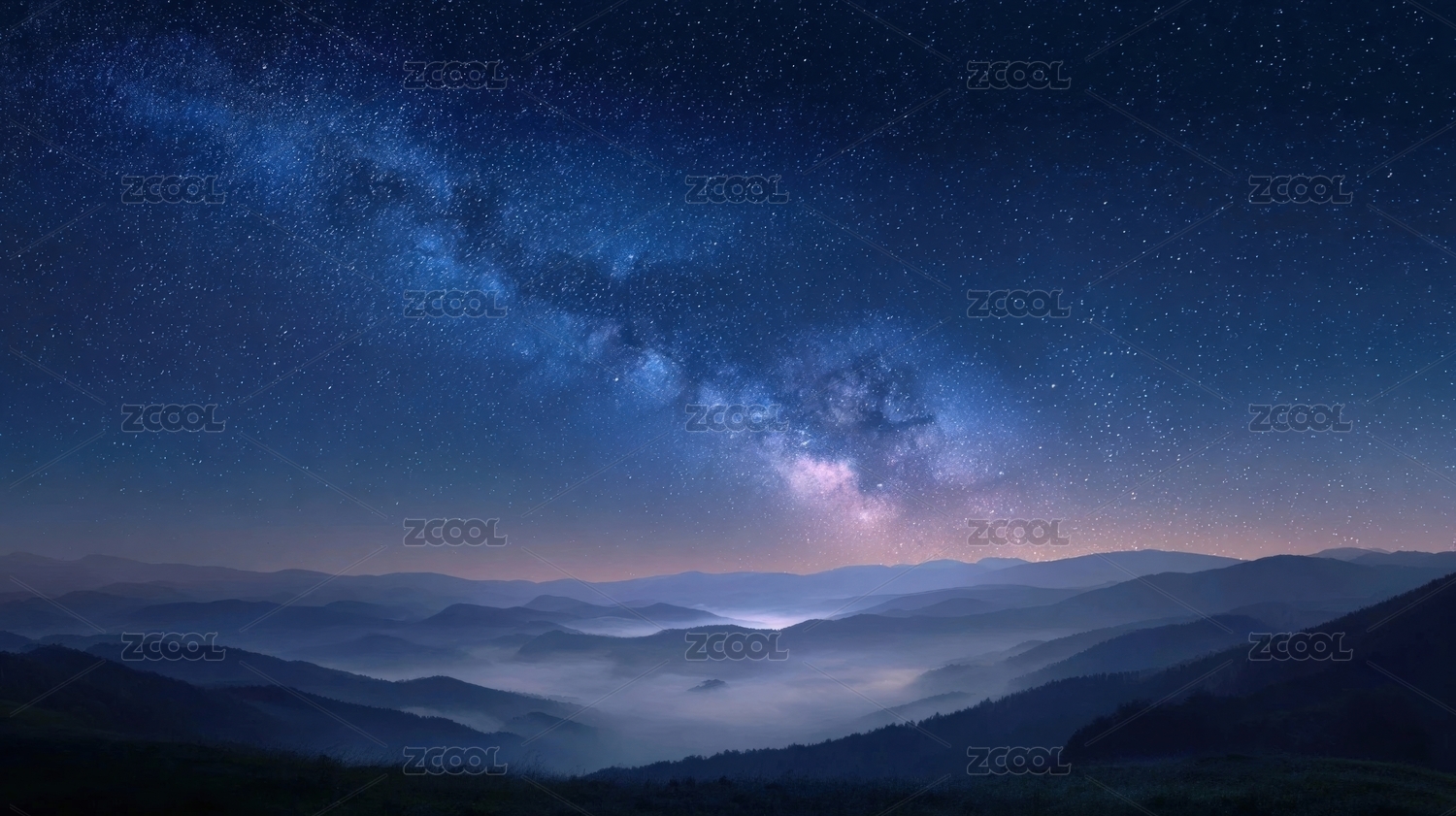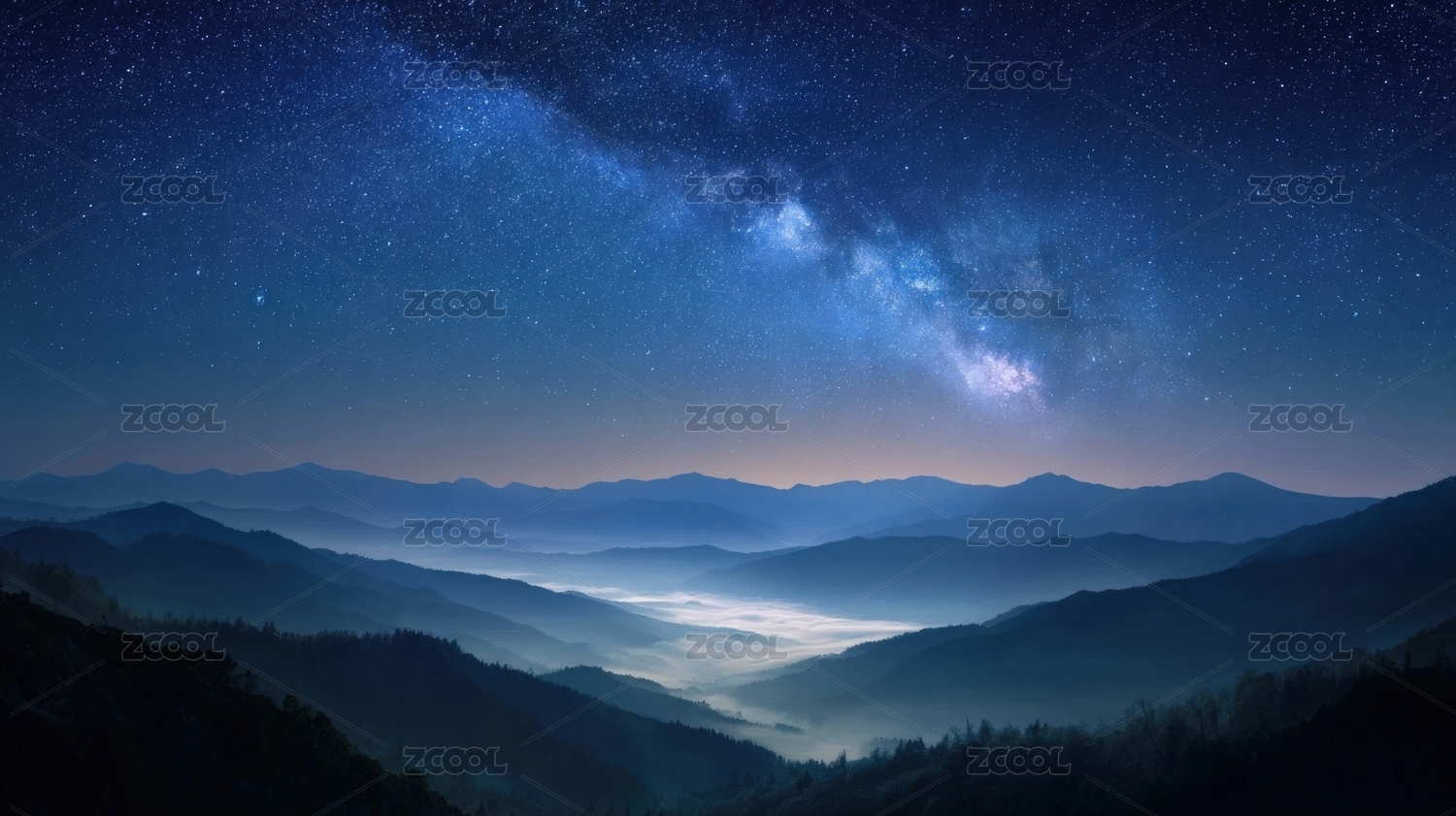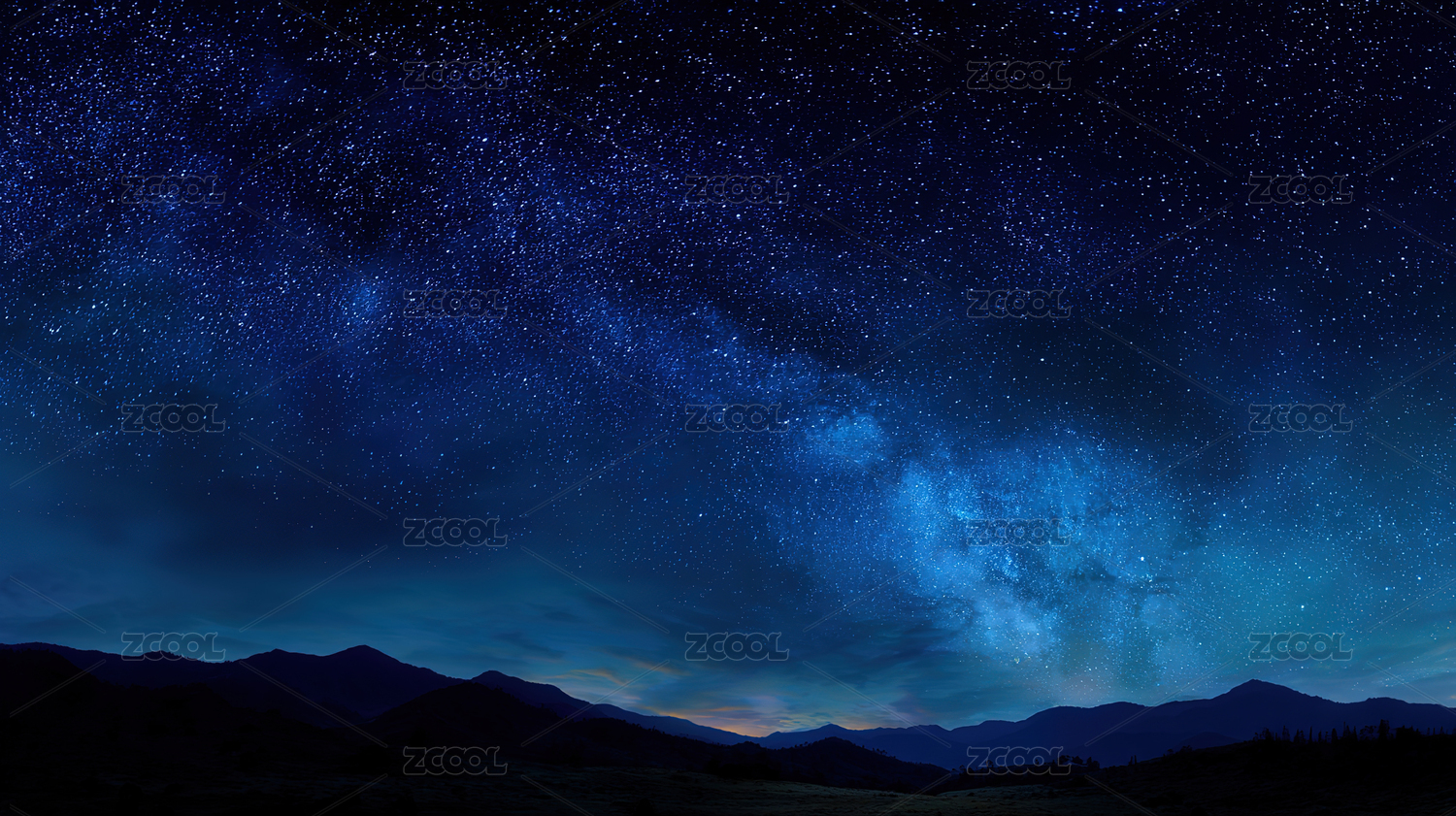 夜晚浪漫蓝色星空下星星闪亮景色的背景