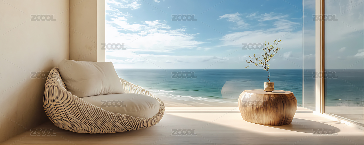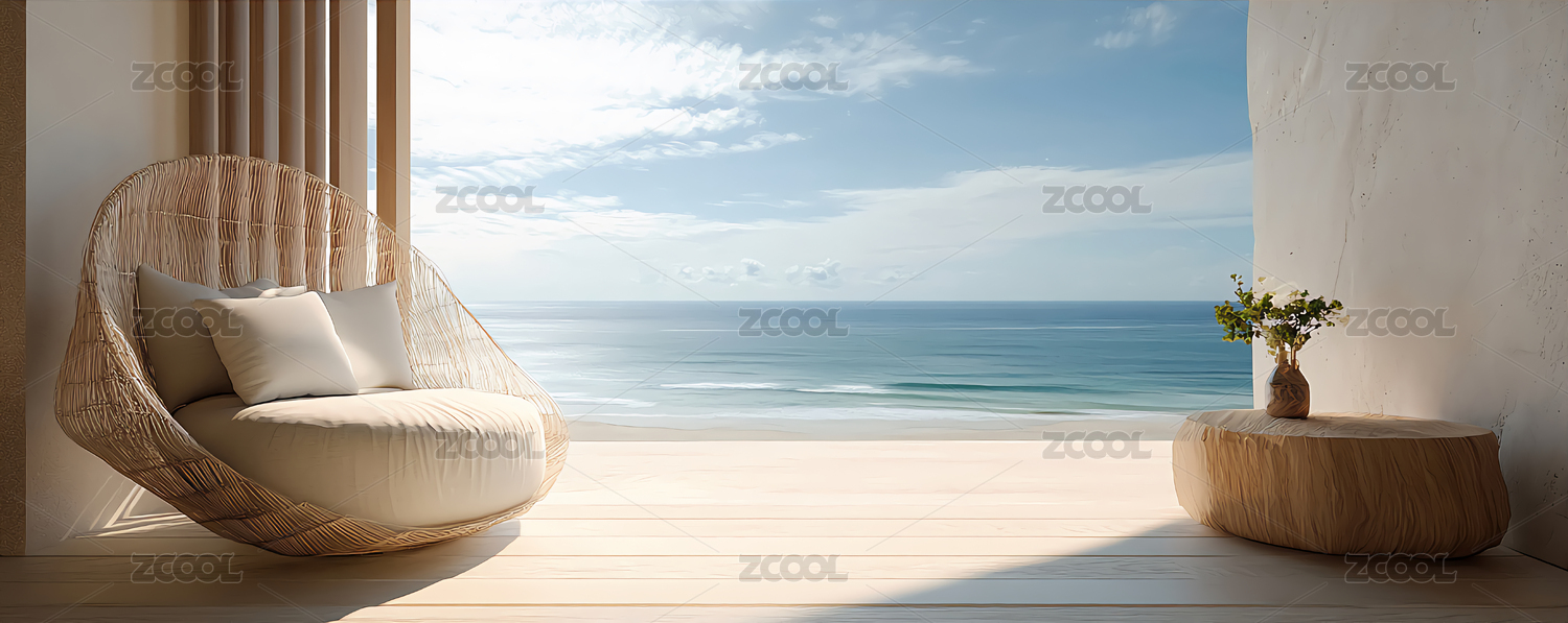 海边,观景,阳台,场景,背景,三维,白昼,平台,绿色,植物