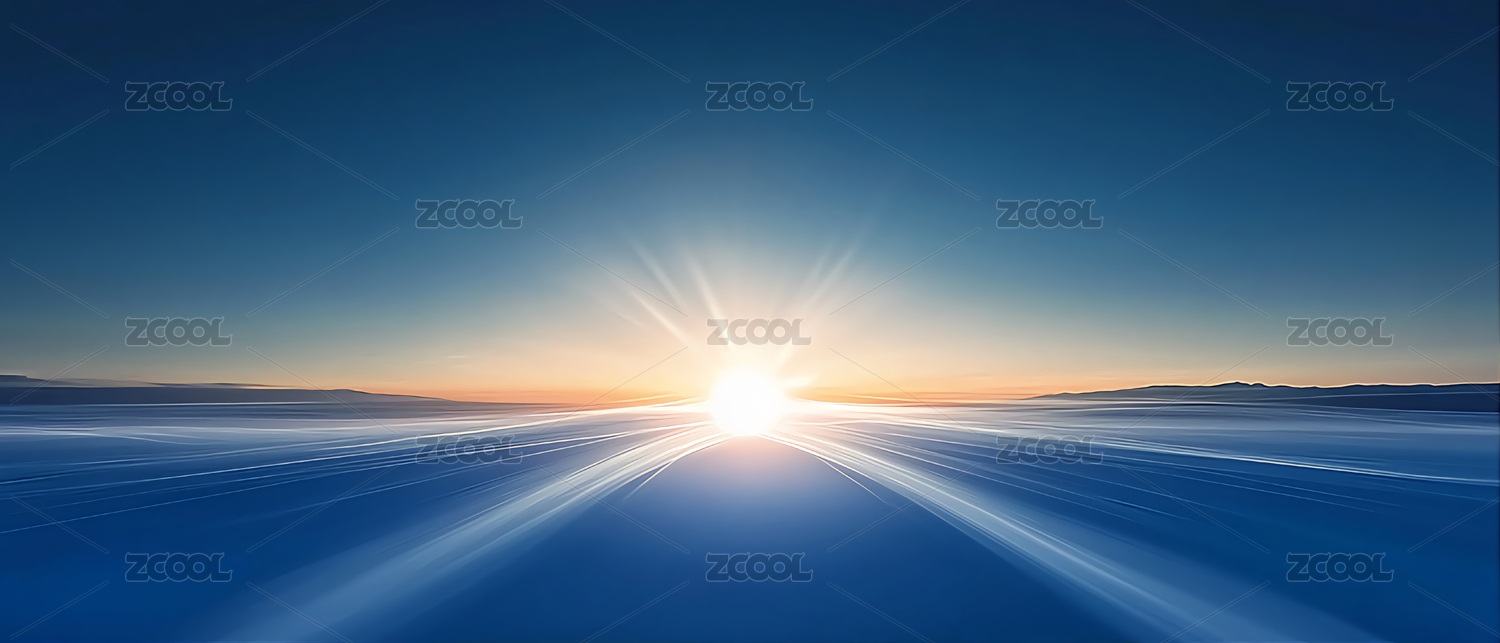 蓝色,海平线,曙光,三维,场景,白昼,光影,渐变,光束,轨迹