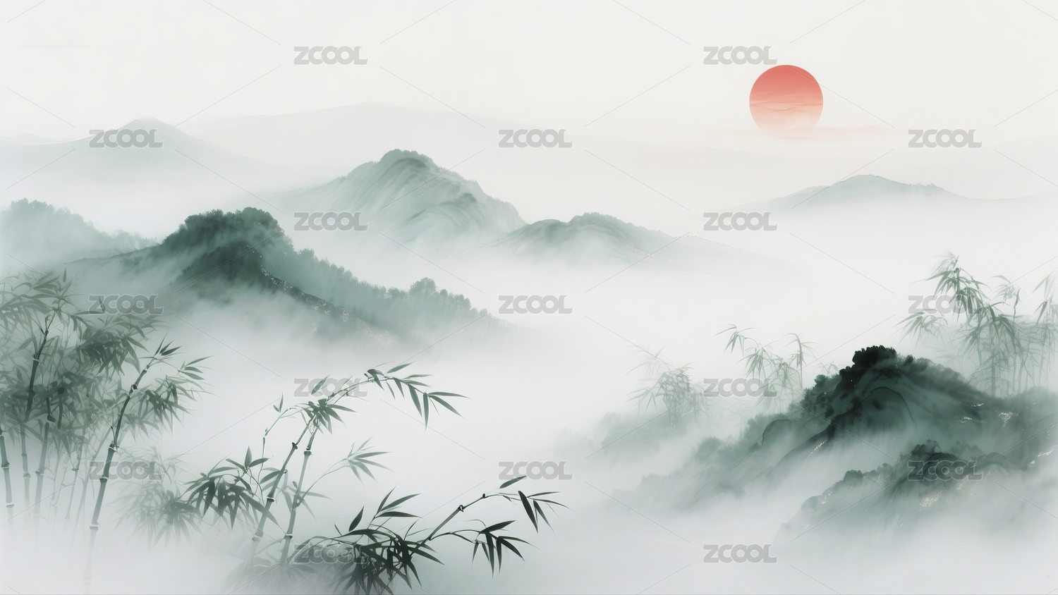 水墨风格山水竹林背景