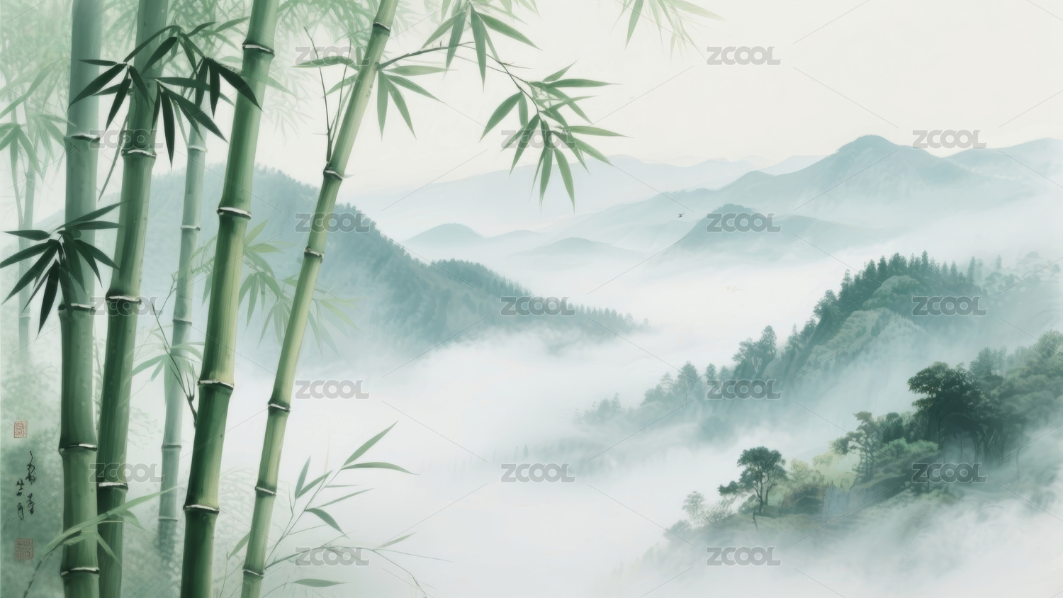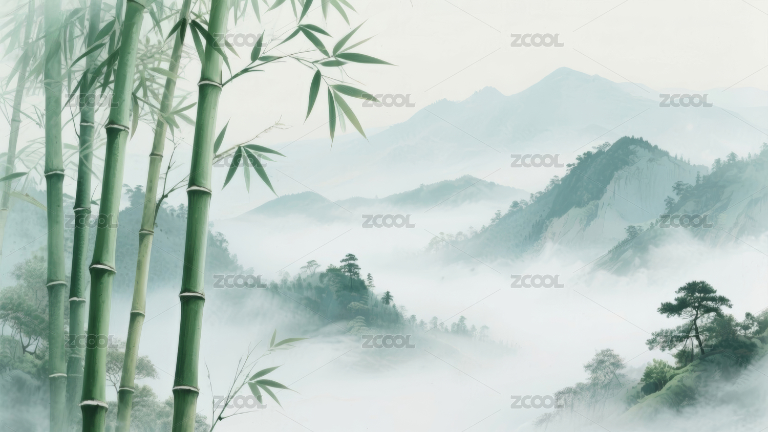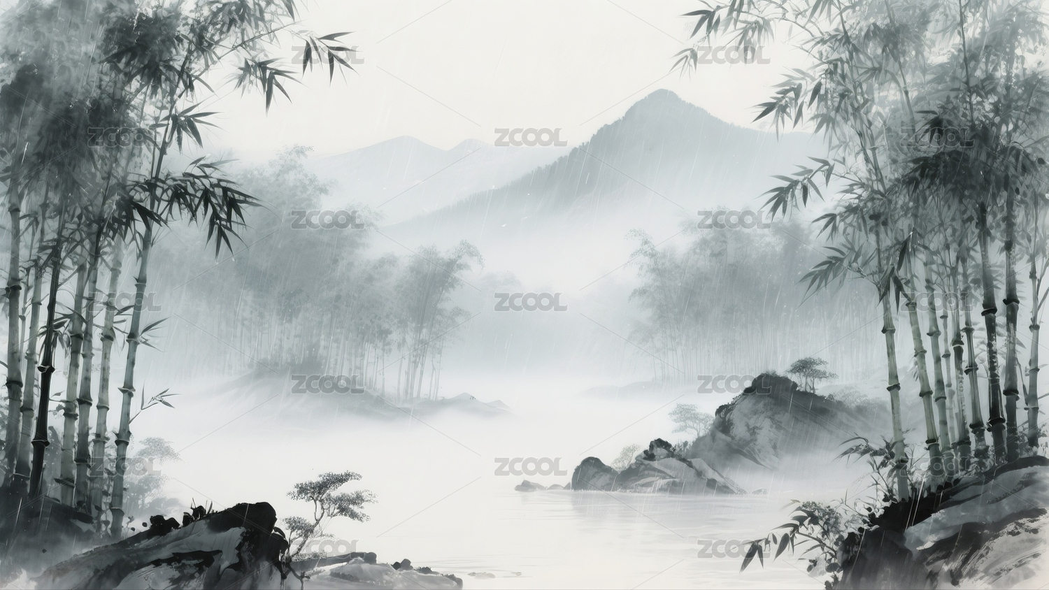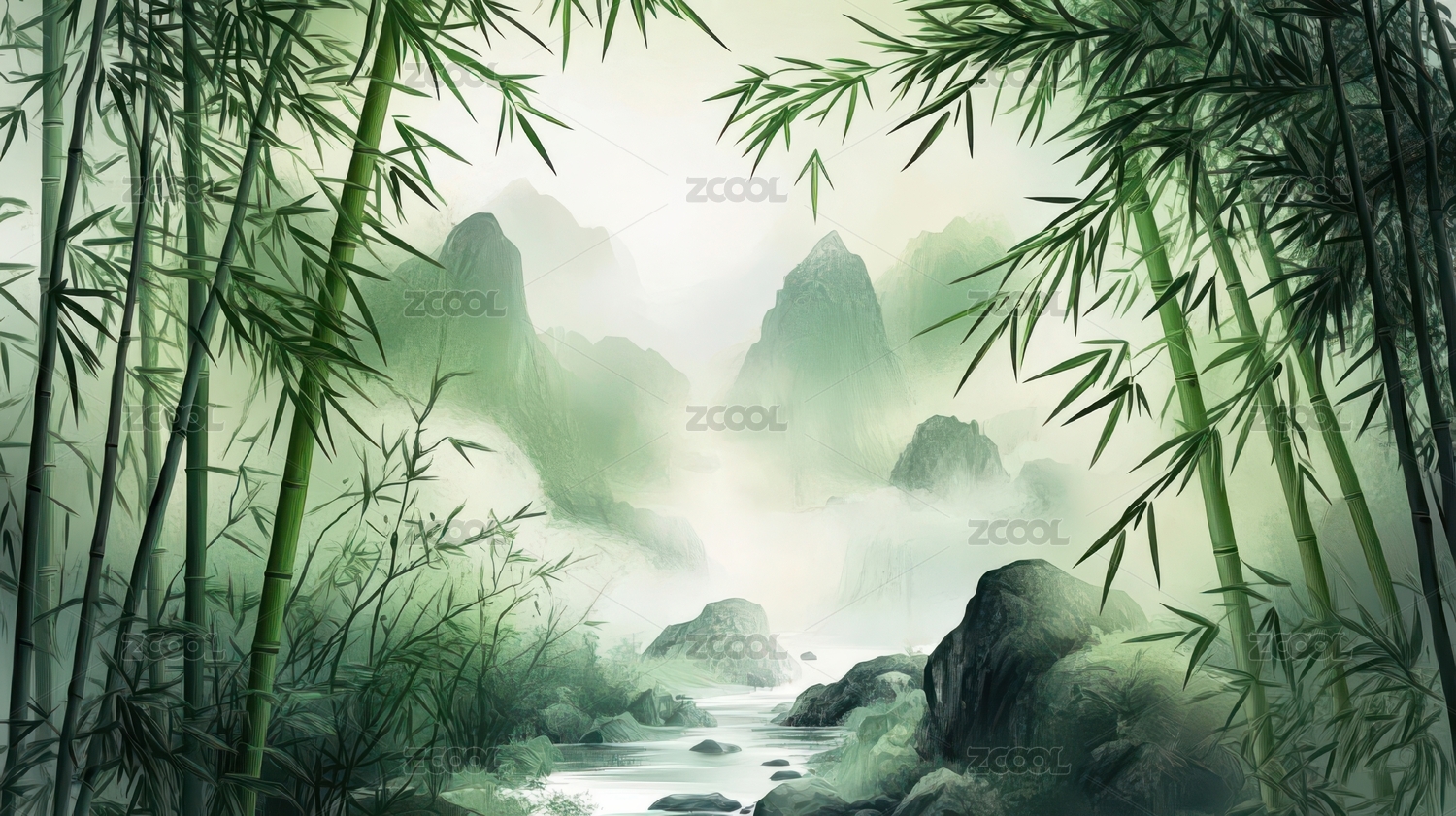竹林,竹子,水墨,国风,插画,水墨画,山水画