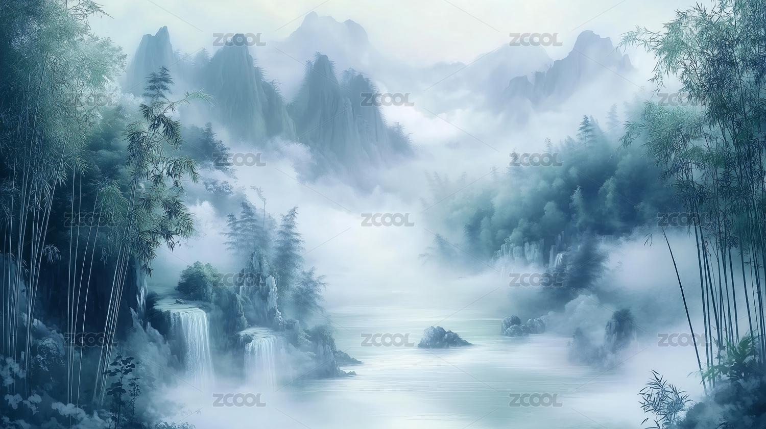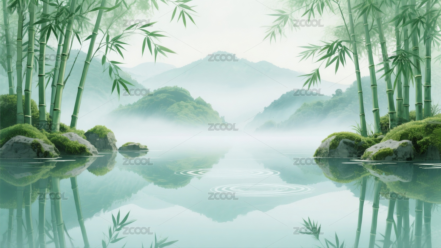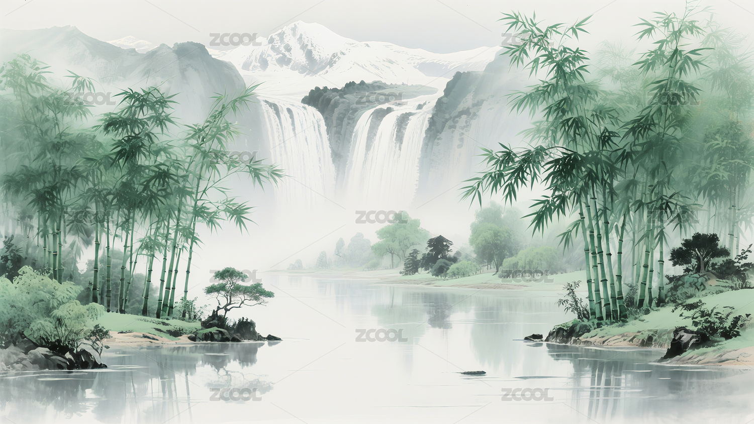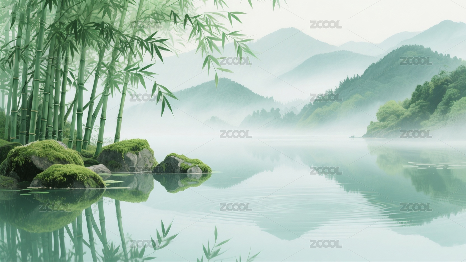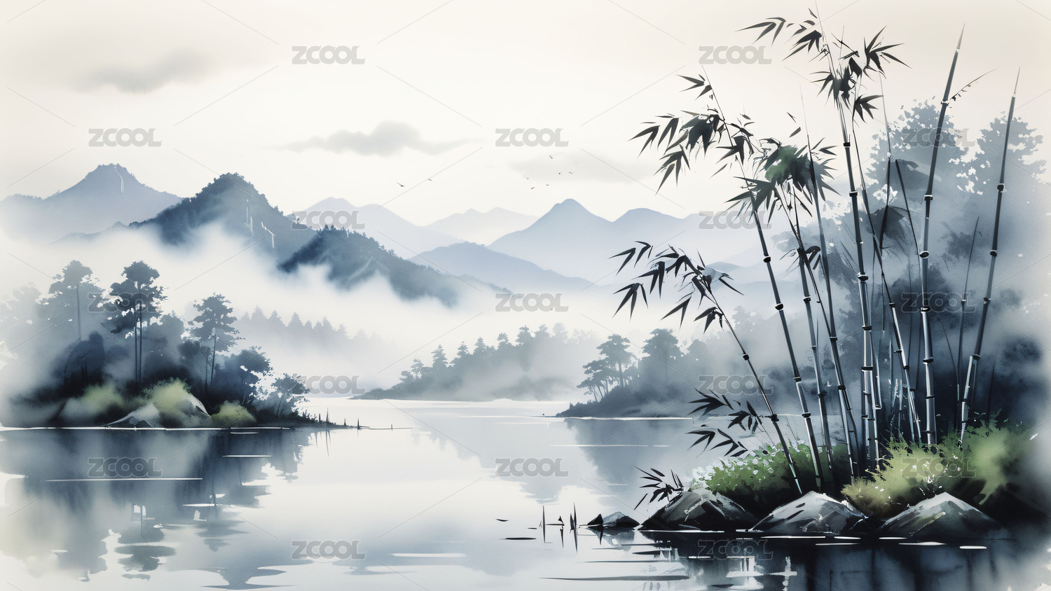 竹林,竹子,水墨,国风,插画,水墨画,山水画