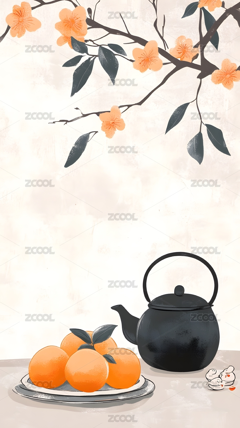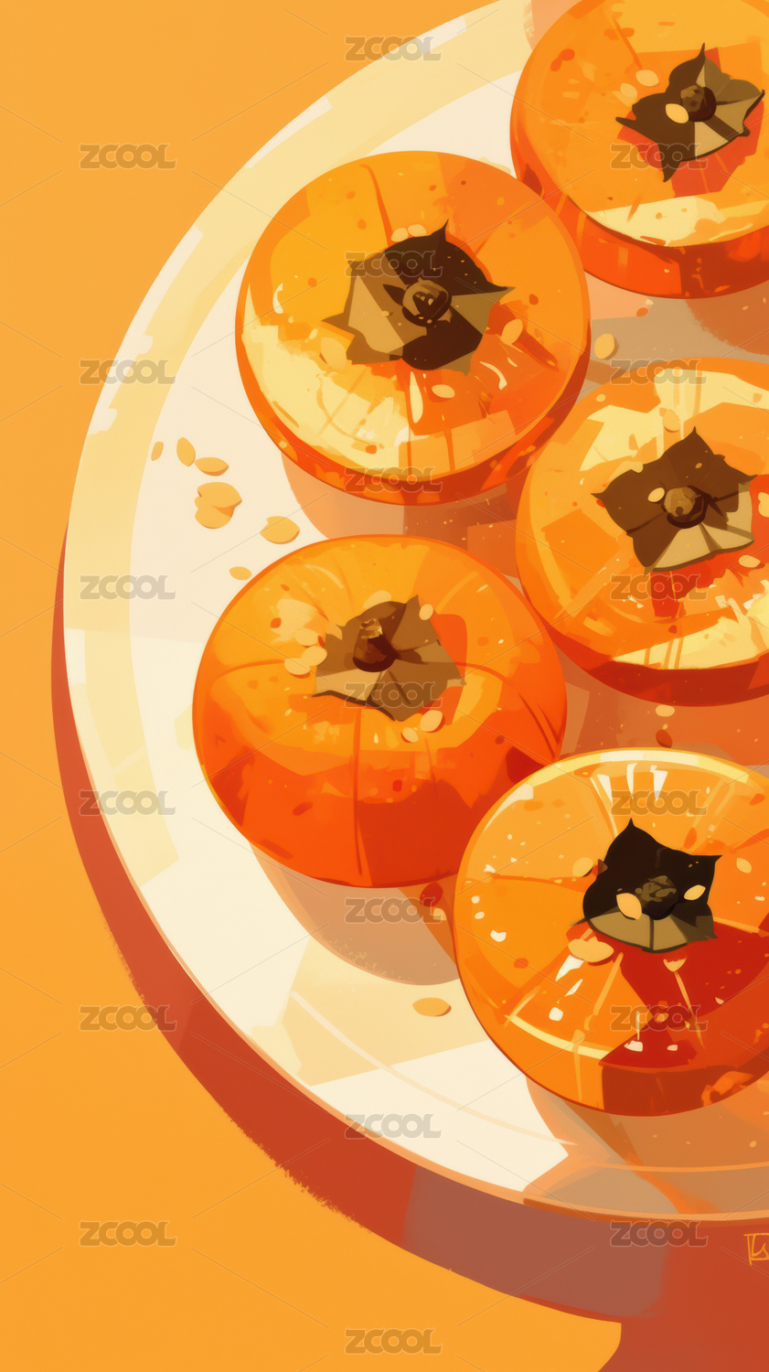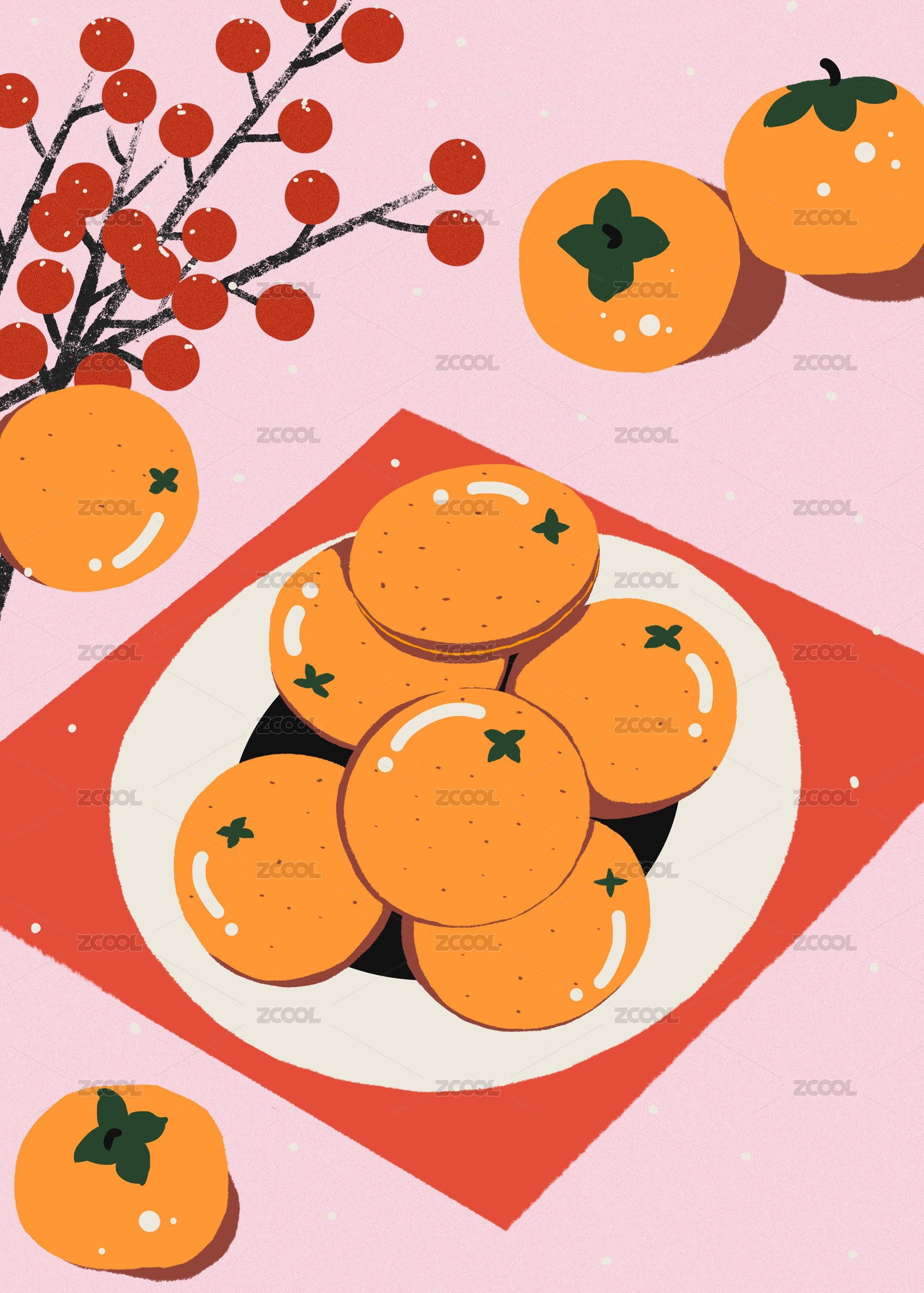 国风,柿子,花生,插画,萌趣,喜庆,治愈,新中式,吉祥,装饰画