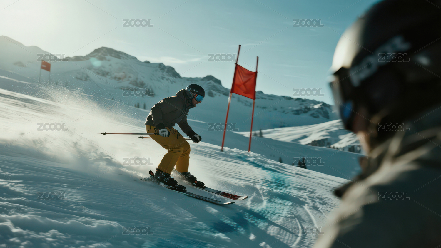 蓝天,阳光,雪地,冬日,护目镜,头盔,运动,挑战,滑雪者,滑雪杖