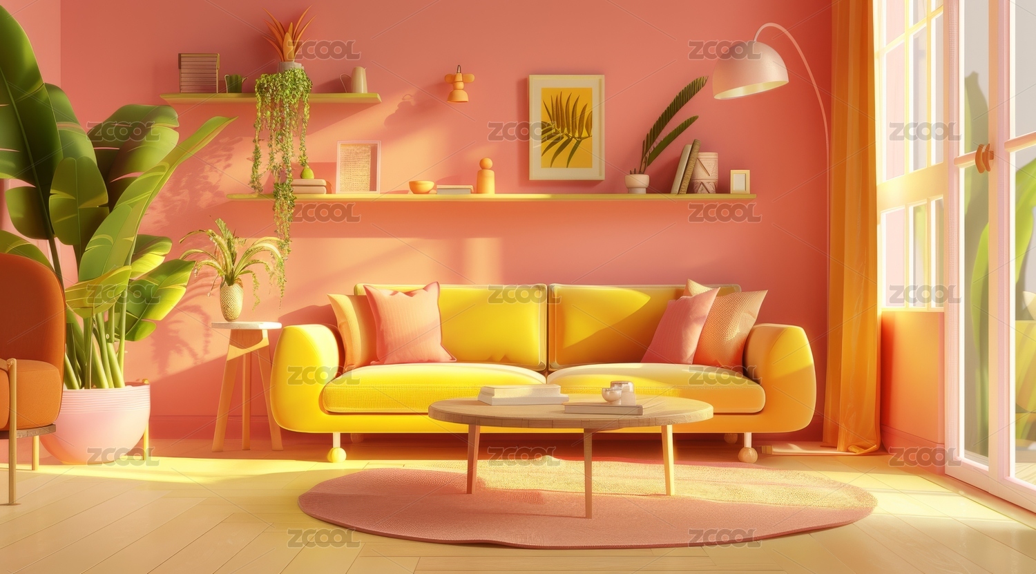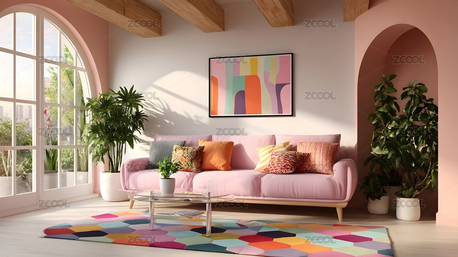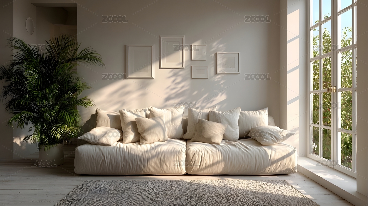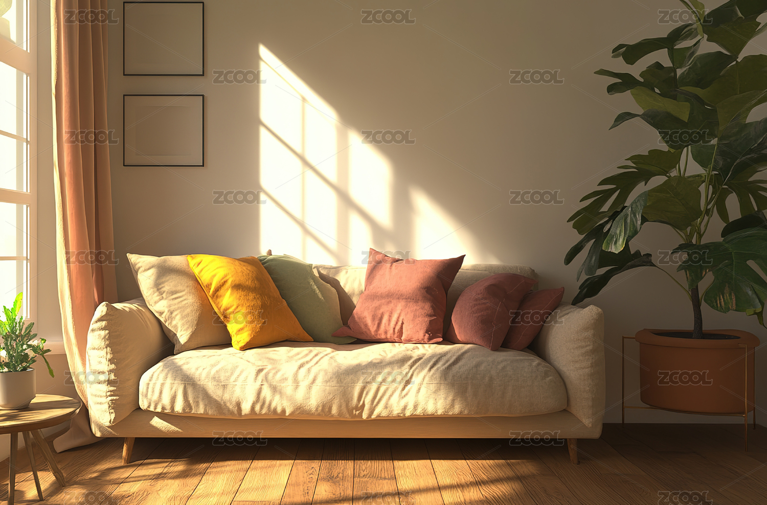 设计,现代,窗户,沙发,植物,室内,阳光,盆栽,抱枕,简约