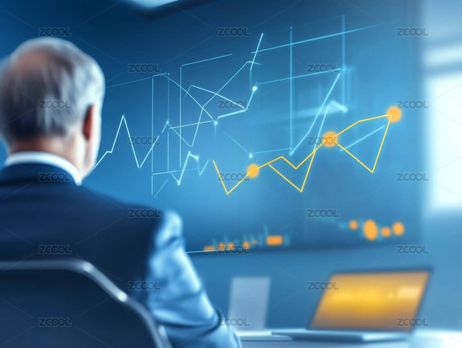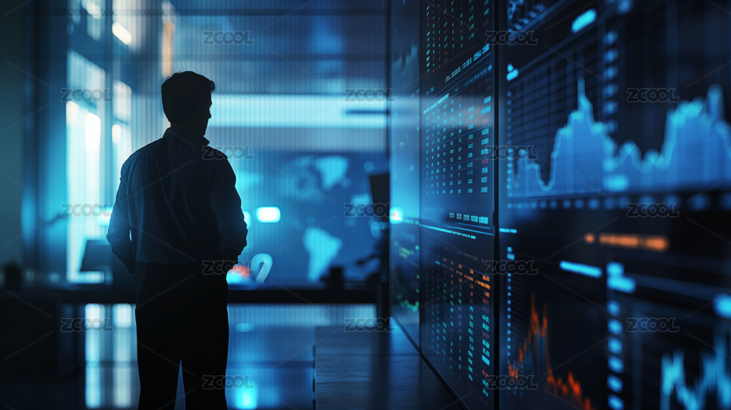 金融数据图表与人物剪影