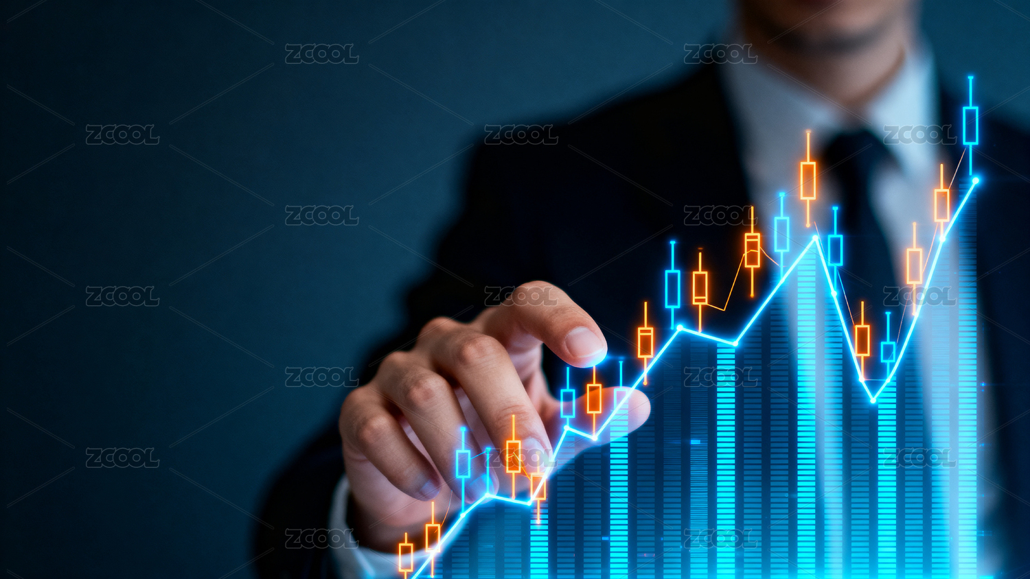 金融图表与手指互动的科技场景