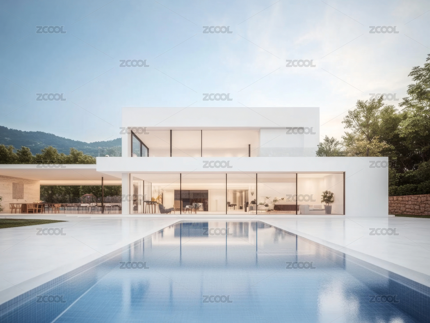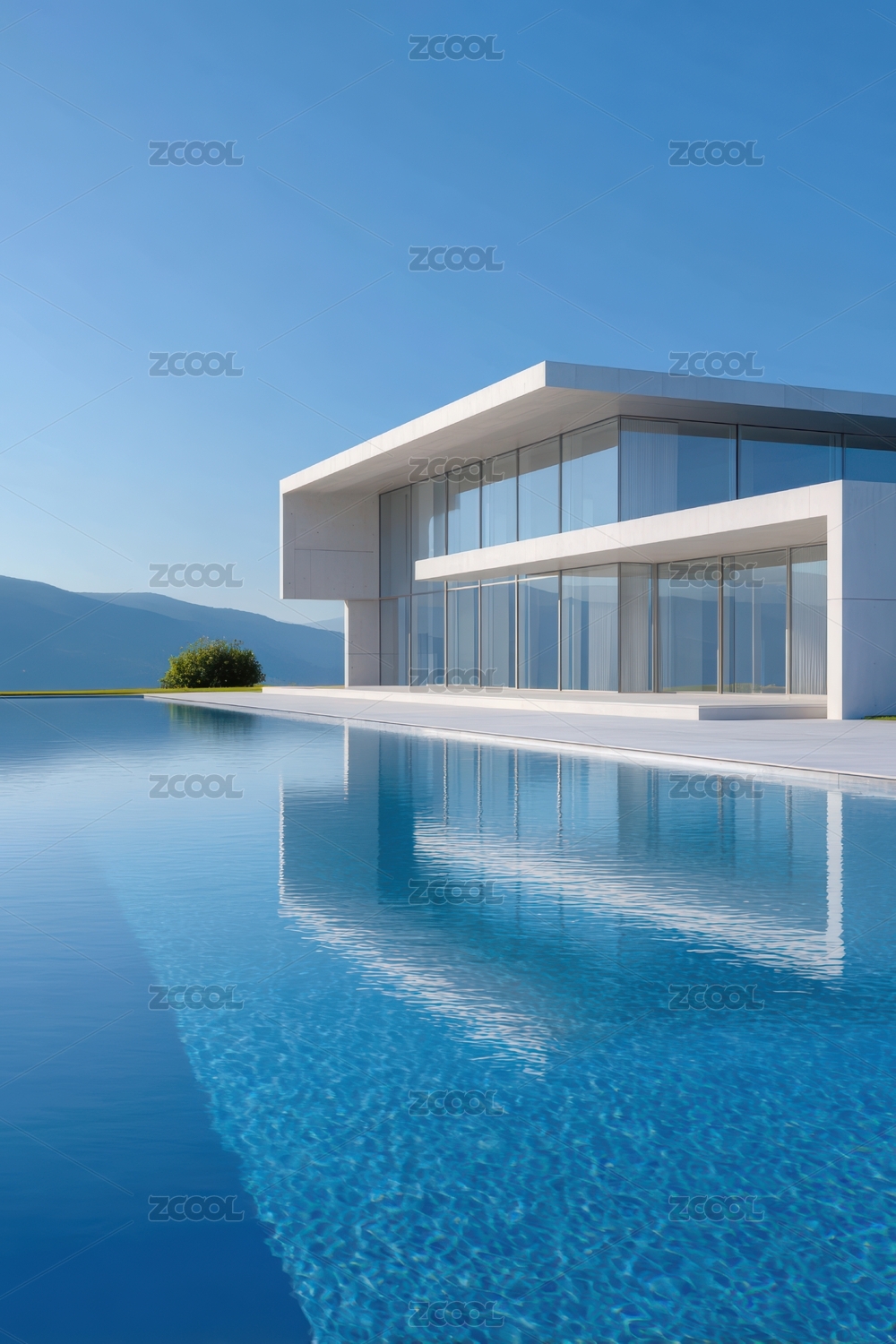 现代,豪华,别墅,游泳池,户外,绿植,无人,草坪,外立面