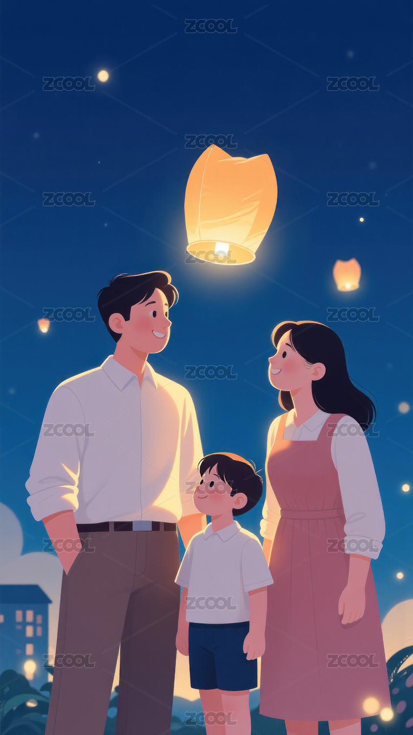 温馨家庭共赏孔明灯花灯中秋节元宵节