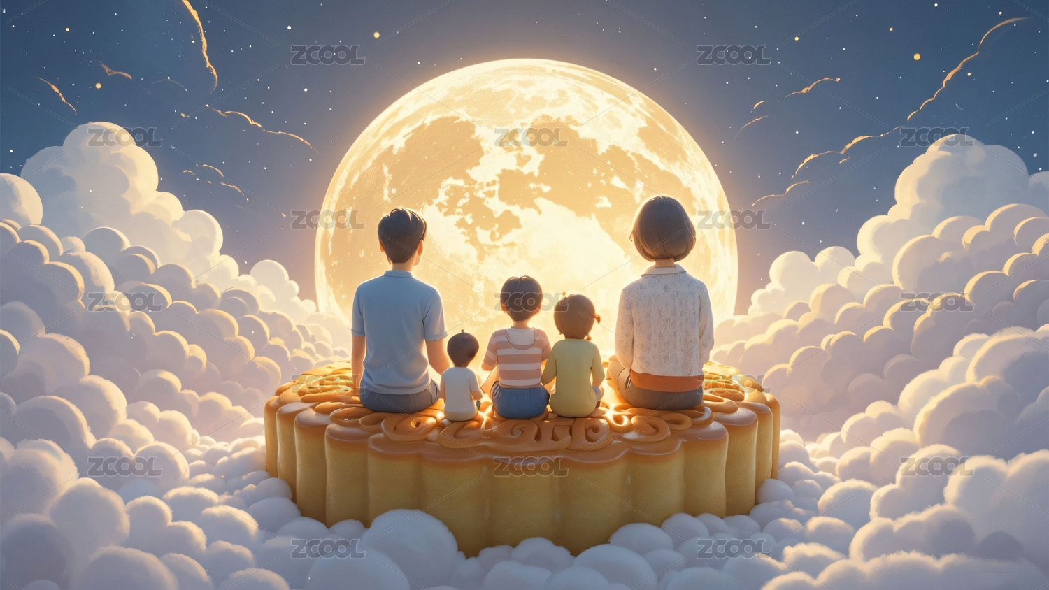 3d,渲染,三维,建模,模型,插画,人物,中秋,中秋节,赏月