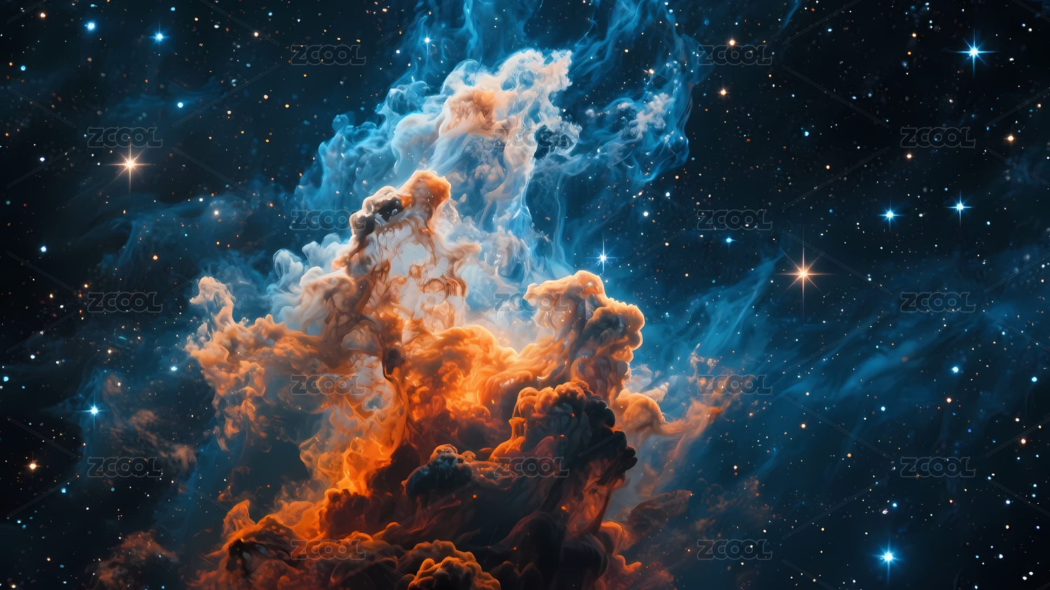 背景,星云,橙色,主体,星空,深邃,星星,蓝色,交织,绚丽